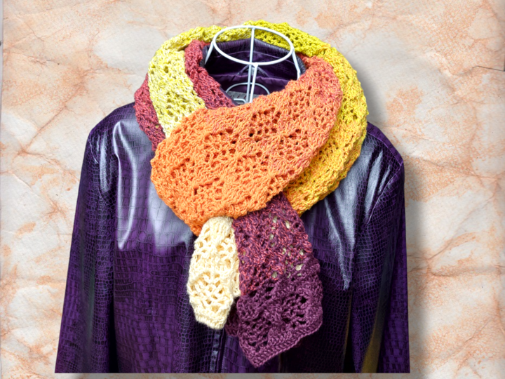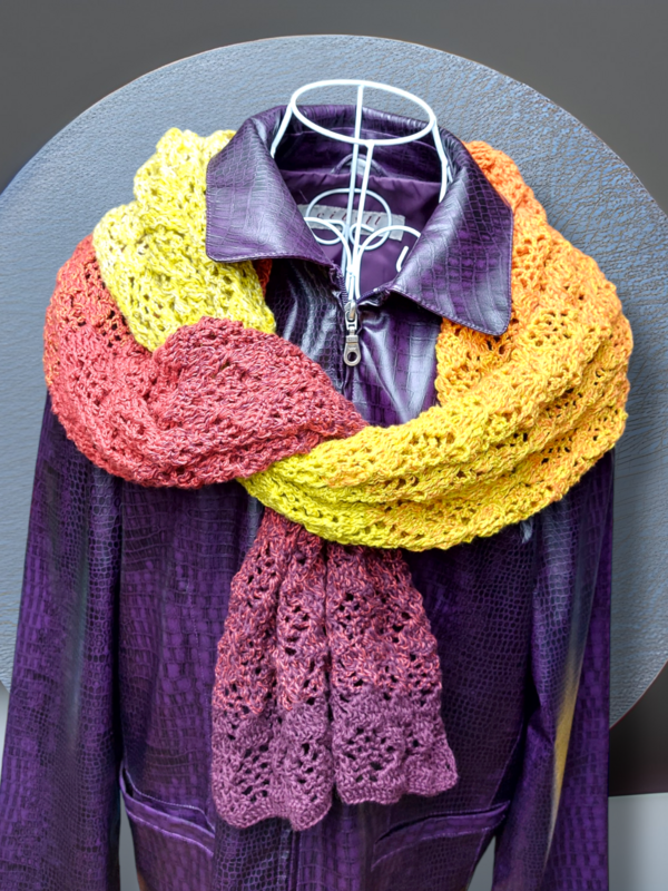 If you crochet exactly according to the instructions, the scarf will get a length of 180 cm and a width of 40 cm.