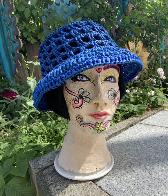 Ja, ich brauchte mal ein luftiges und sehr leichtes Sommerhütchen, das meine Frisur auch nicht immer so plattdrückt....( das Lochmuster ist auch prima, um schnell mal die Lesebrille an den Kopf zu platzieren).