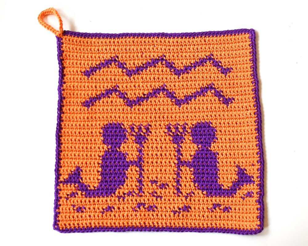 The cloths / potholders are worked in Tapestry Crochet. The pattern includes a very detailed basic course for the Tapestry Crochet Technique, which is quite easy to learn.