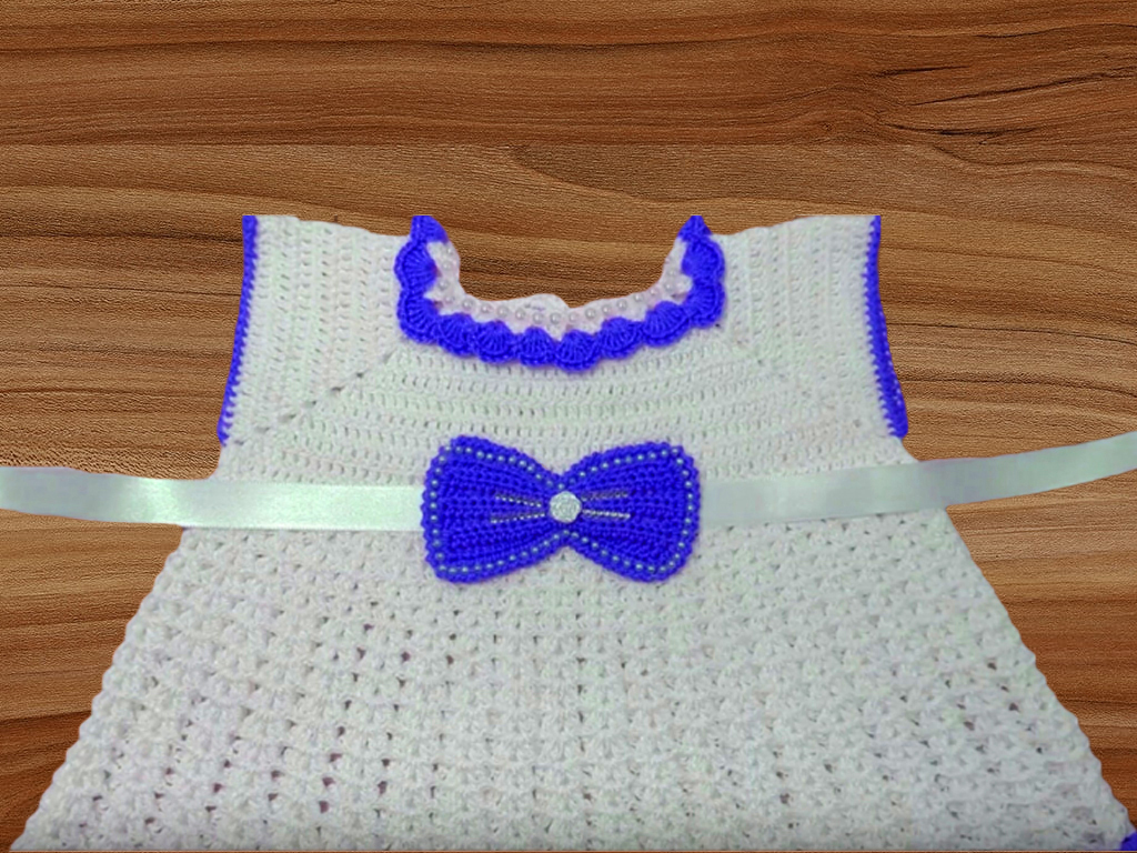 Crochet Baby Dress Pattern Consists of written description with details and photo tutorials.