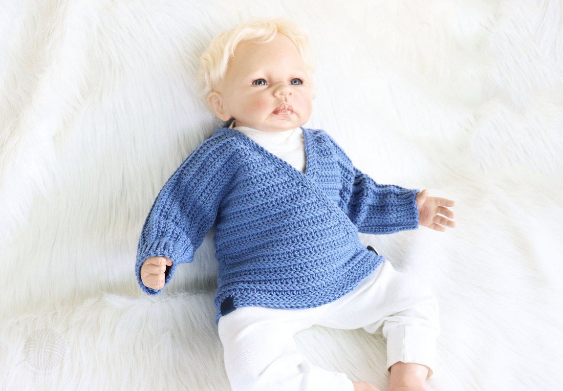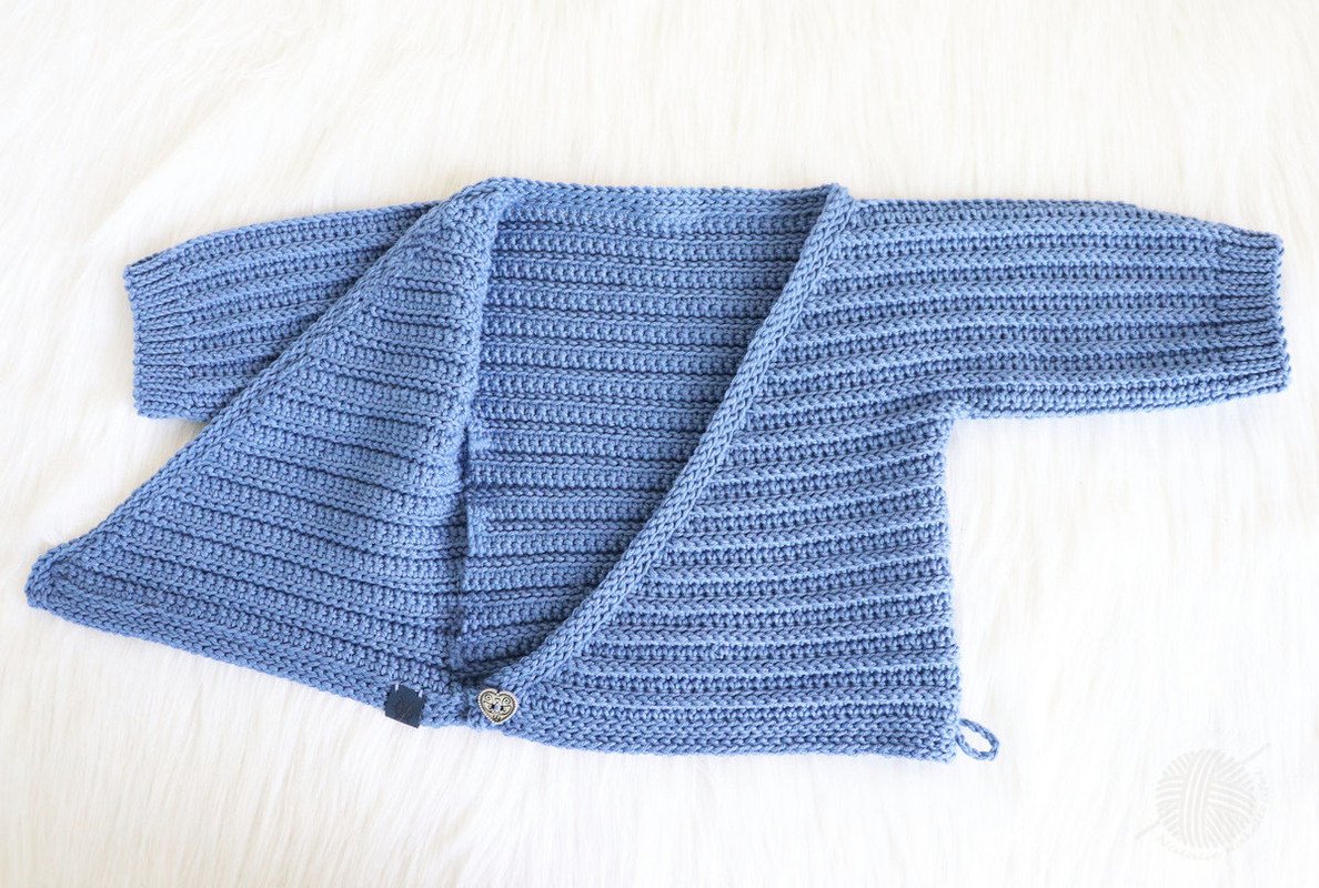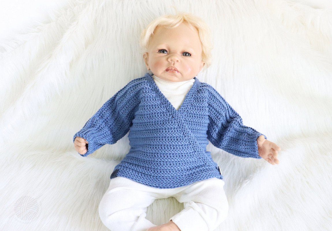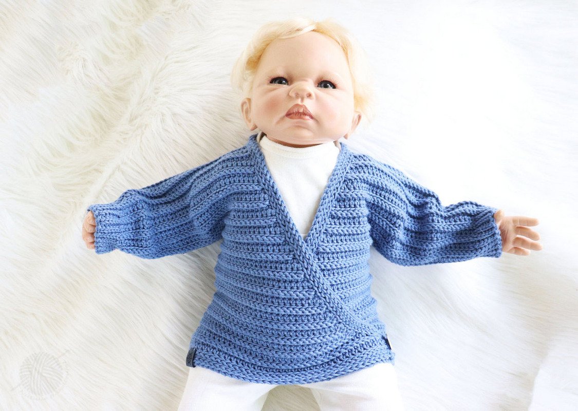 This PDF crochet pattern consists of illustrated tutorial for crocheting a сardigan for babies "Danny" for sizes 0 m.-24 m. The jacket can be crocheted for both summer and winter (depending on the wool). The jacket is crocheted as one piece and therefore only has two seams (side seams and sleeve seams).