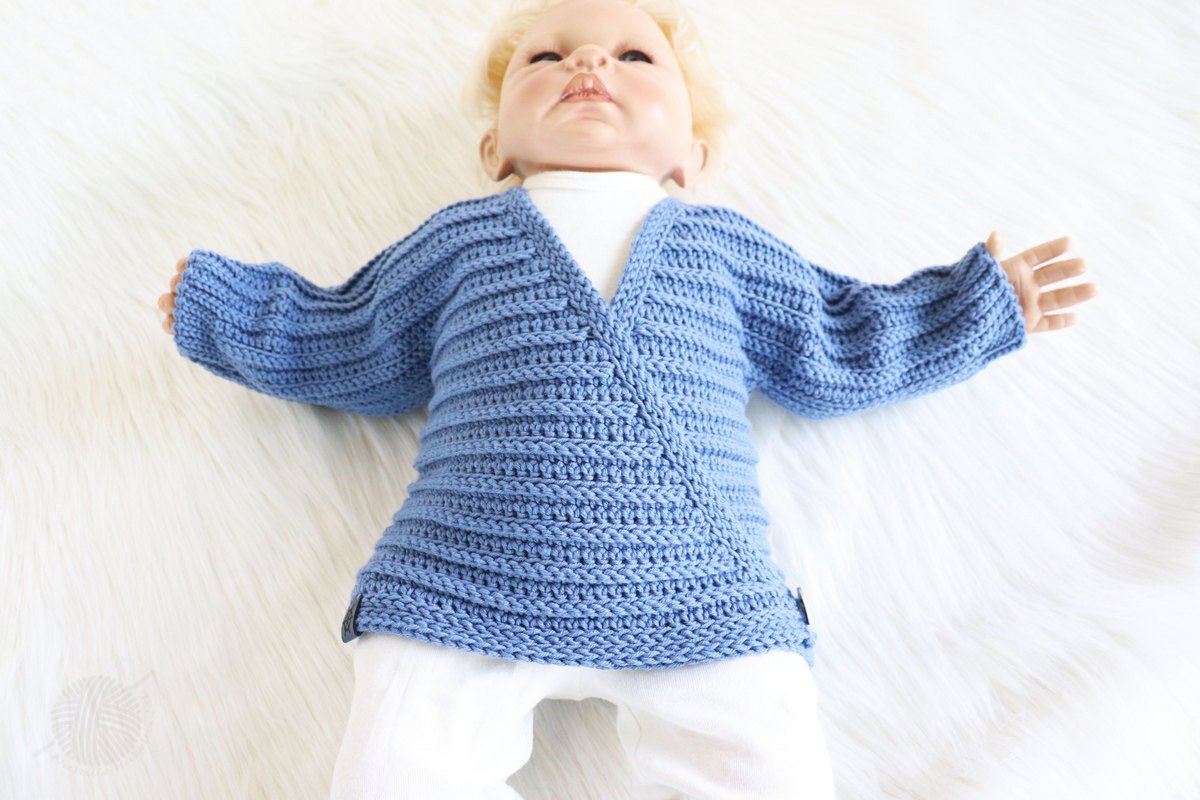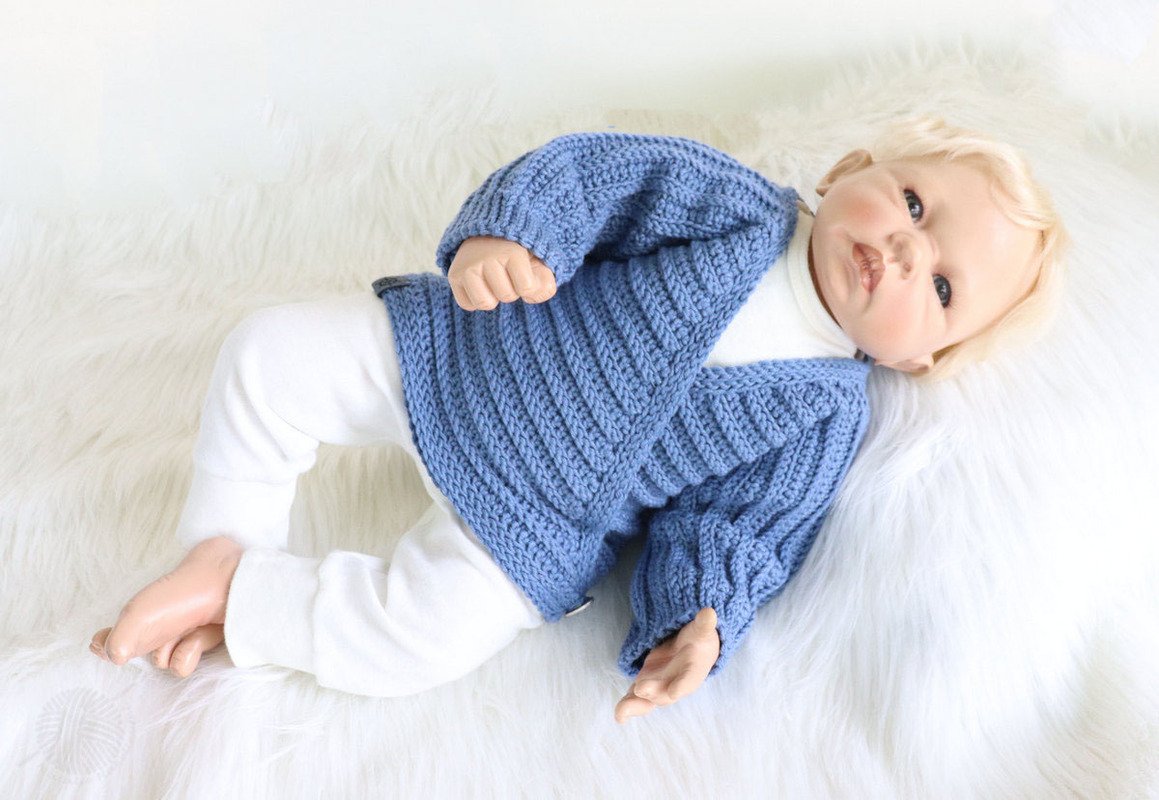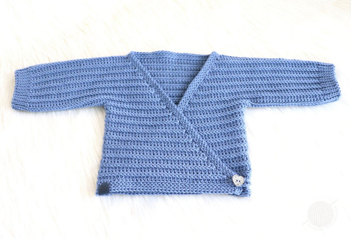 This PDF crochet pattern consists of illustrated tutorial for crocheting a сardigan for babies "Danny" for sizes 0 m.-24 m. The jacket can be crocheted for both summer and winter (depending on the wool). The jacket is crocheted as one piece and therefore only has two seams (side seams and sleeve seams).