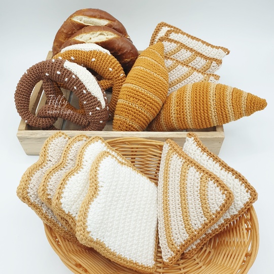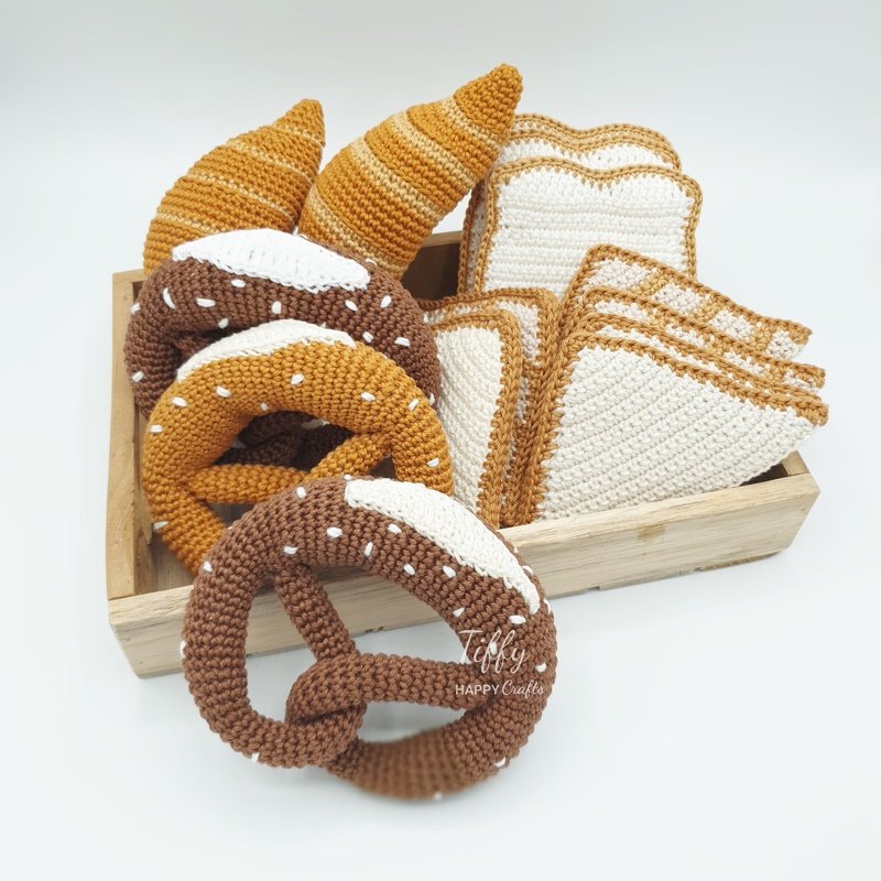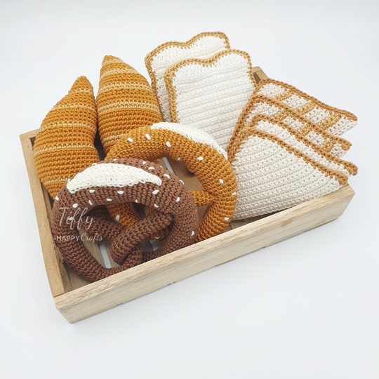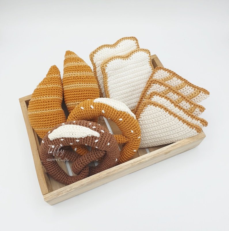 This lovingly designed crochet set brings fun and imagination to every play kitchen and pretend shop!