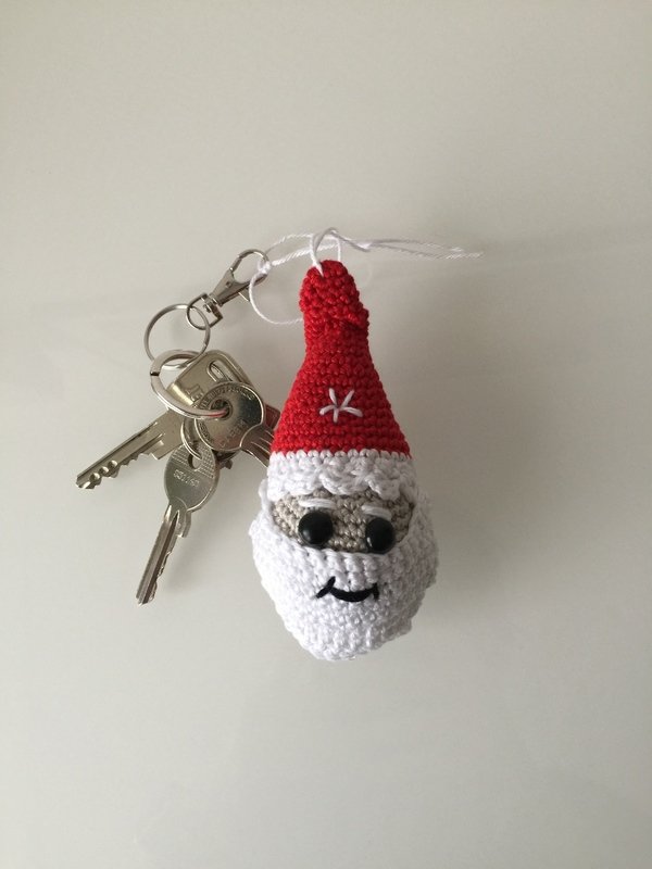 Ihr könnt ja auch unter der Mütze etwas kleines verstecken, vielleicht zu Nikolaus. Oder benutzt doch diesen Weihnachtmann selbst in der gesamten Weihnachtszeit als hübschen Schlüsselanhänger. Euch fällt sicher so einiges ein.