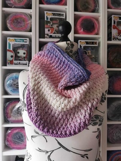 Whether wide, classic or asymmetrical triangular shawl, the Schwuppdiwupp shawl can be crocheted in all variations. In addition, the file includes a pattern for a matching loop.