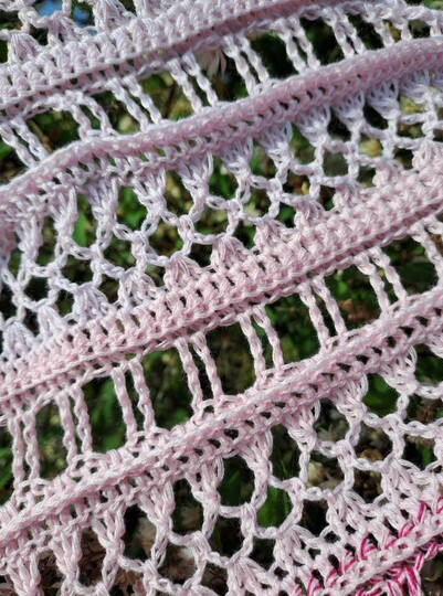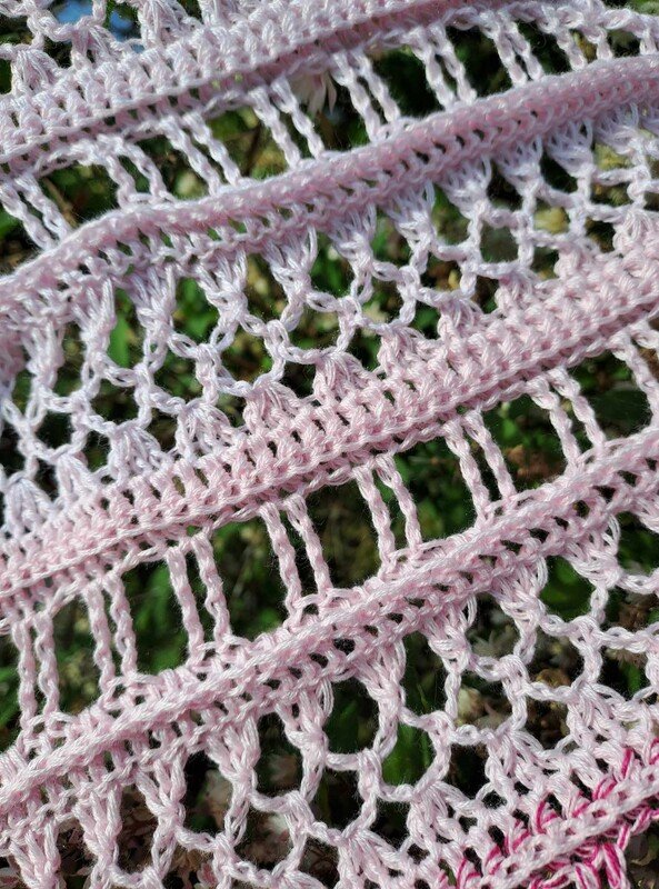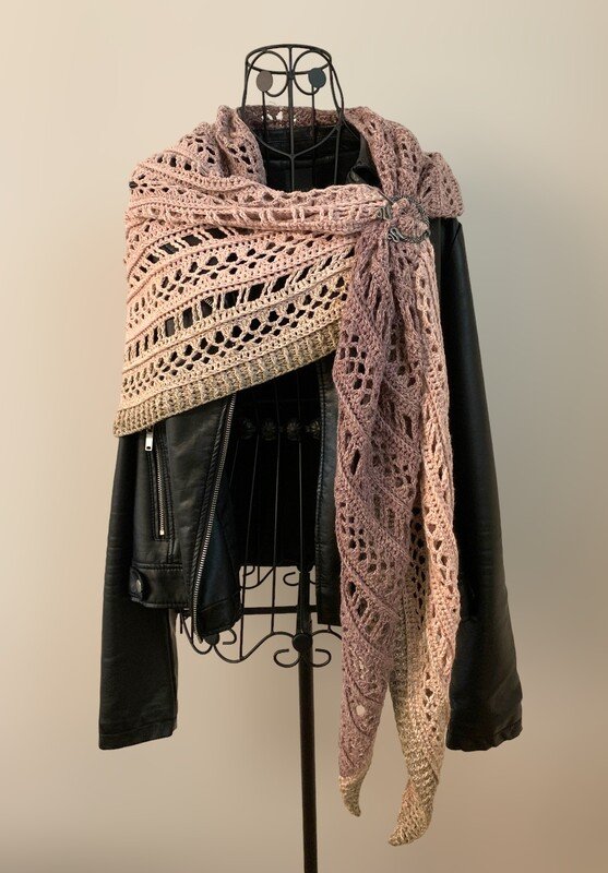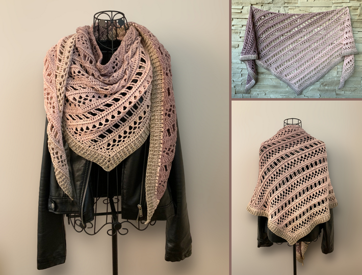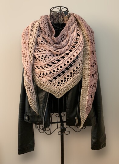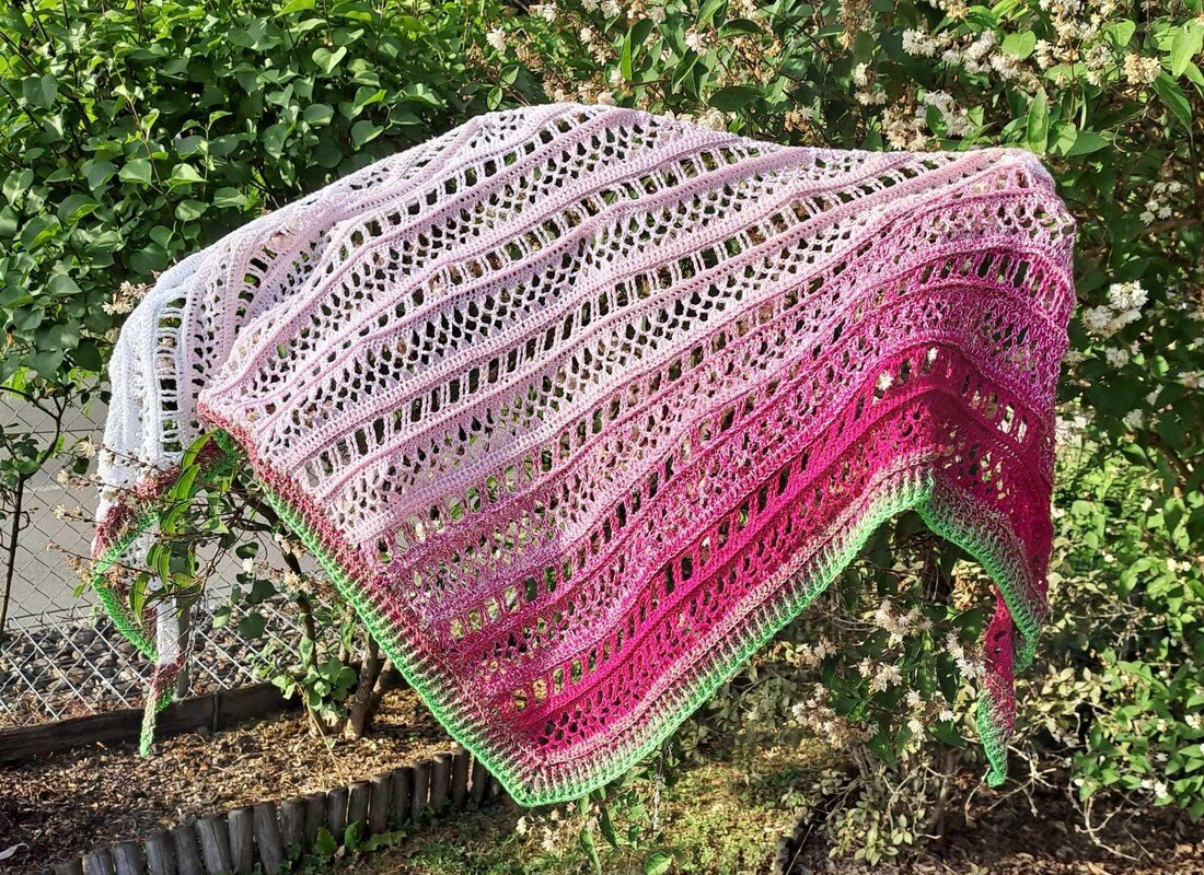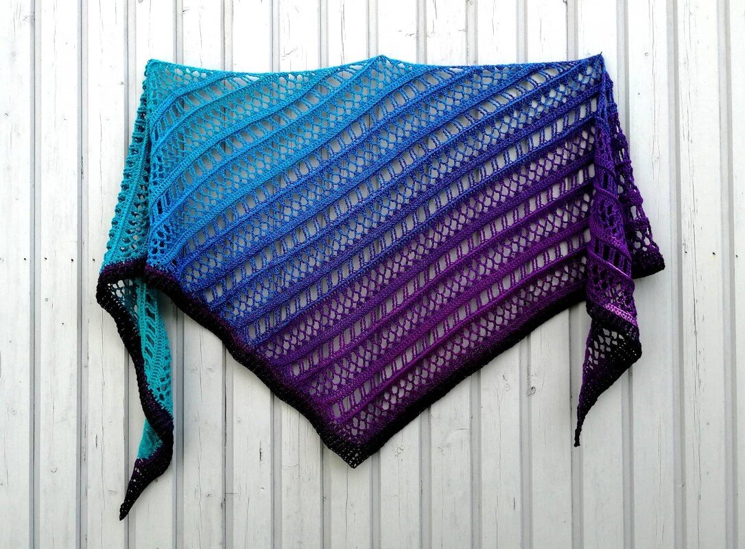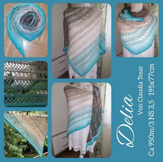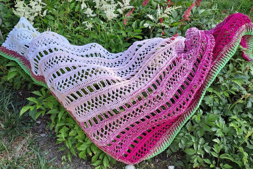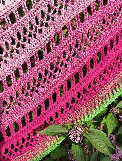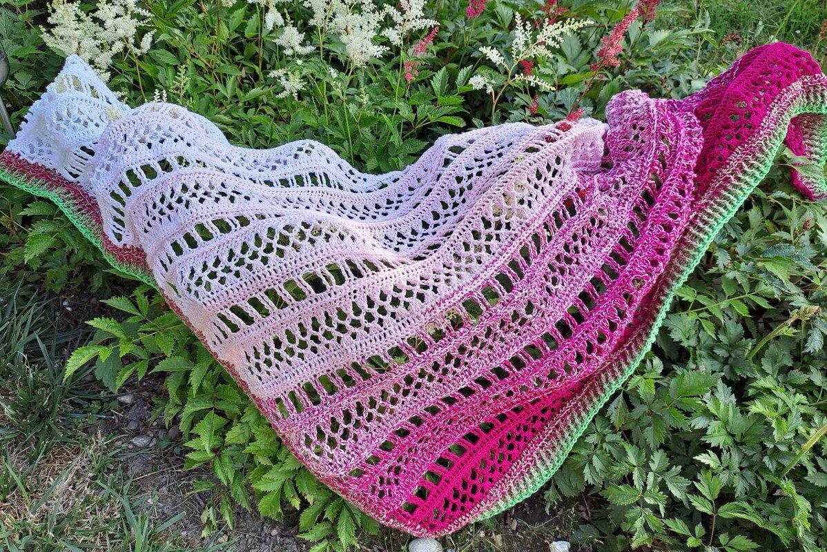 The flat triangular scarf "Delia" is a loose and airy scarf that can be crocheted in any size. It is ideal for the summer, and can be crocheted very fast.