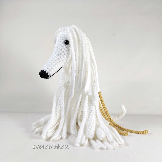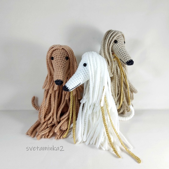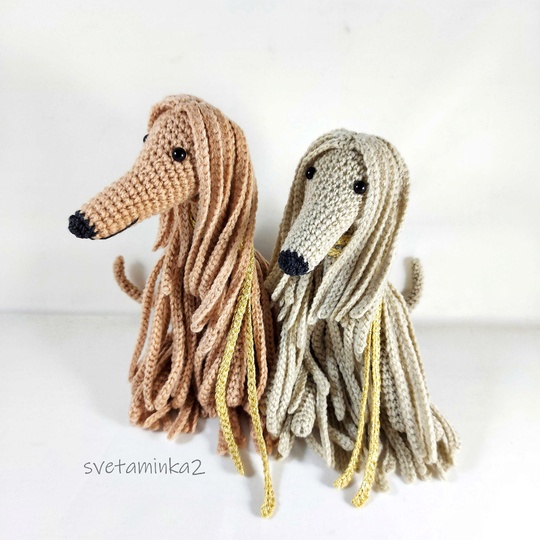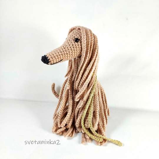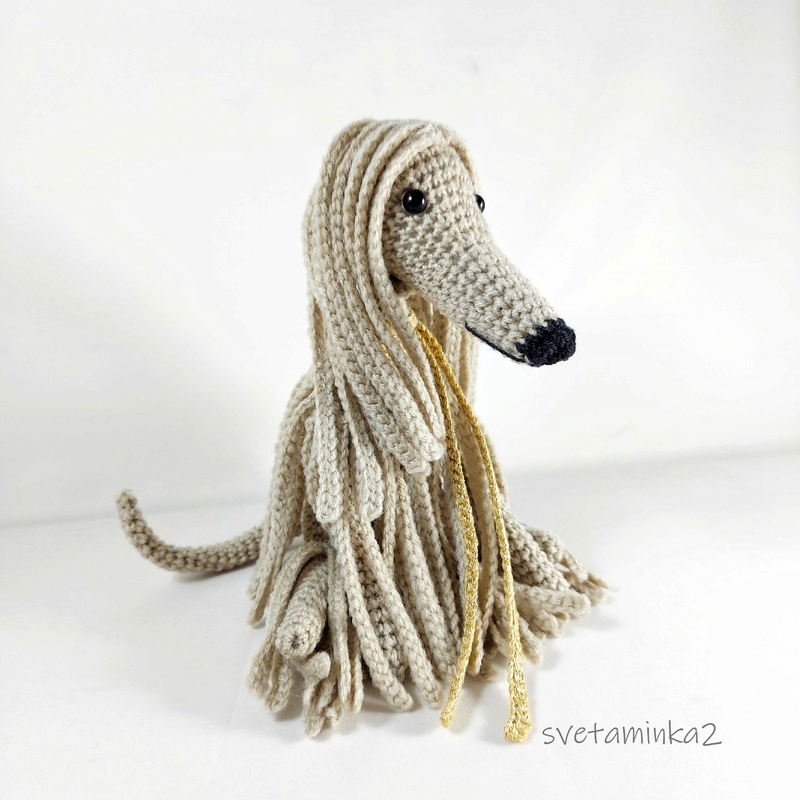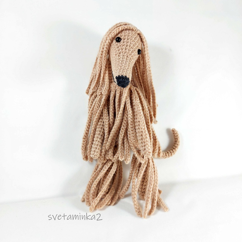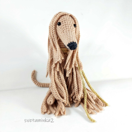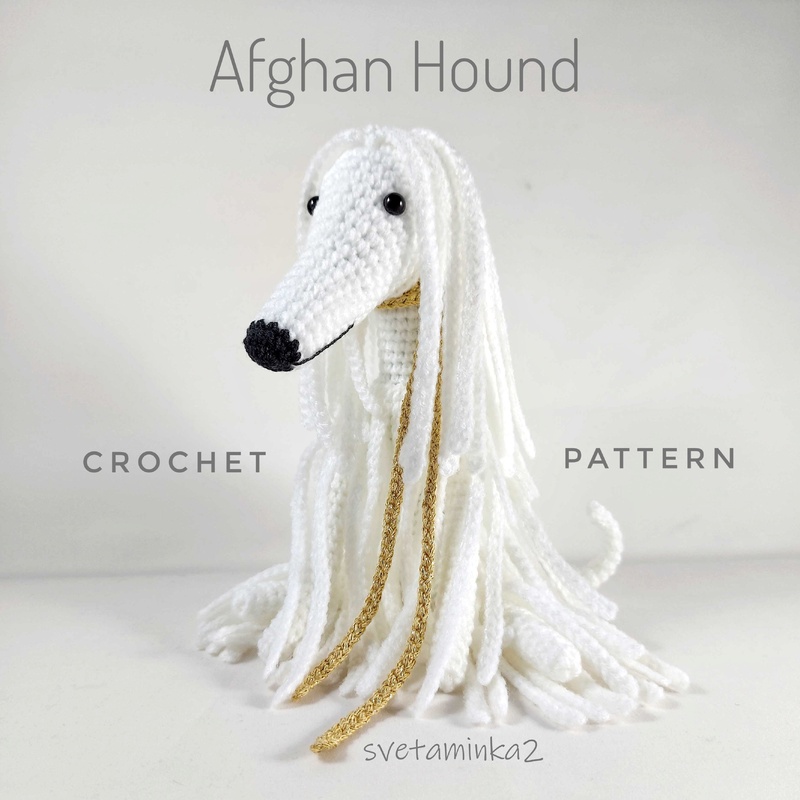 Dog Crochet Pattern to make Afghan Hound / Sighthound amigurumi dog (downloadable pdf file) in English (US terms), very detailed, very clear instructions and tips with lots of photos for each step. (the original pattern by svetaminka2)
