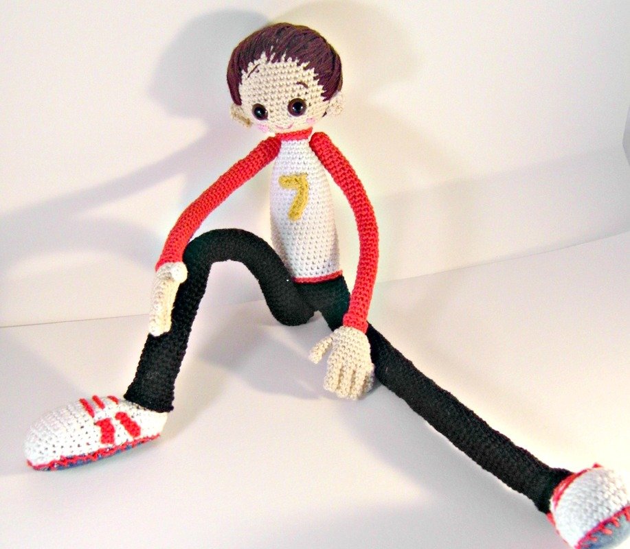 Die Größe der fertigen Puppe kann je nach dem Garn, das benutzt wird und je nachdem wie fest gehäkelt wird, variieren.