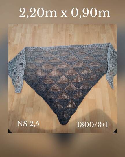 The scarf shown in the main picture has following dimensions: 205 x 85 cm. The pattern includes further rows to make the scarf even larger. If you design your own scarf, you can make it as large as you would like.