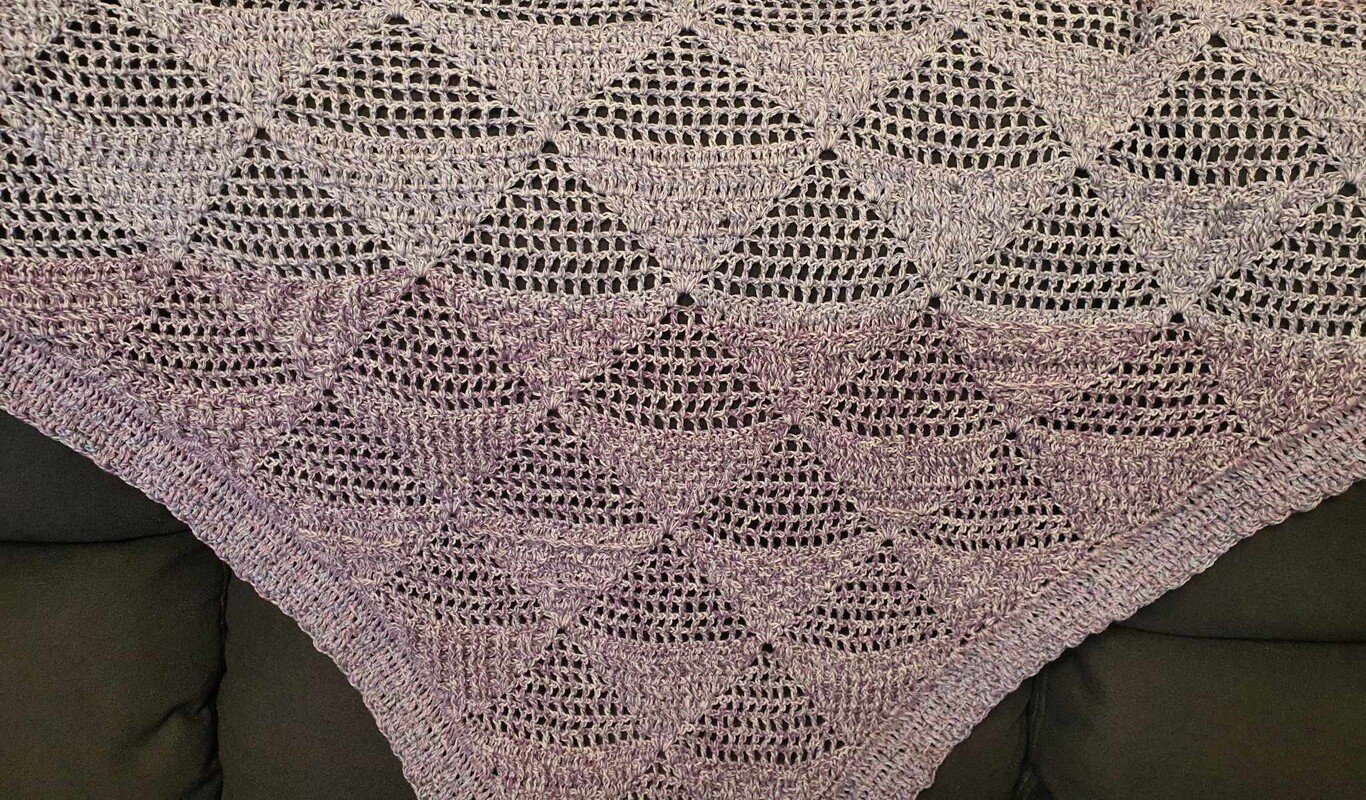 "Diantha" is a beautiful scarf with loads of triangles. The dense triangles all consist of different patterns (front post and back post stitches), so you will not get bored while crocheting it.