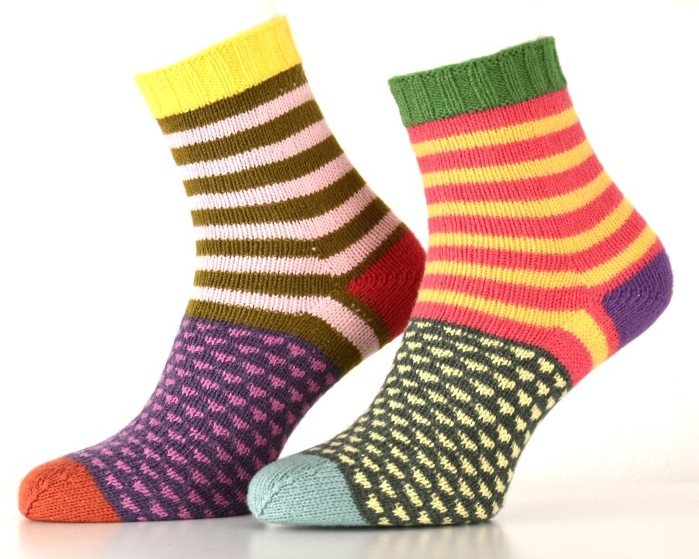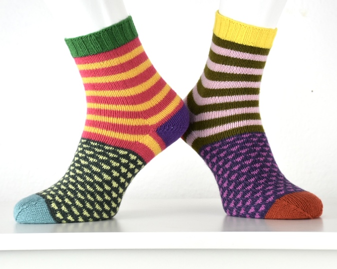 Strickanleitung für Socken, bei der auch kleinere Wollreste verarbeitet werden können.