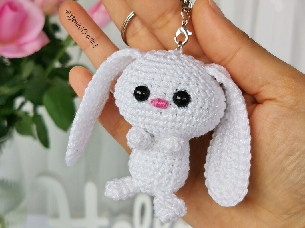 Crochet your very own cute Bunny - Floppy Ears with this No Sew Crochet Pattern! Perfect for advanced beginners and experienced crafters alike, this pattern provides easy-to-follow instructions and photo tutorial to help you make a charming, handcrafted bunny without any sewing. Use your favorite yarn colors to customize your cute creation! Ideal as an Easter gift or any hanging decor, like a car mirror hanging decoration or backpack keychain, this pattern is a delightful addition to any amigurumi collection. Download instantly and start crocheting your cute Floppy Bunny today! Happy hooking!