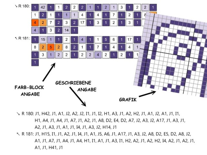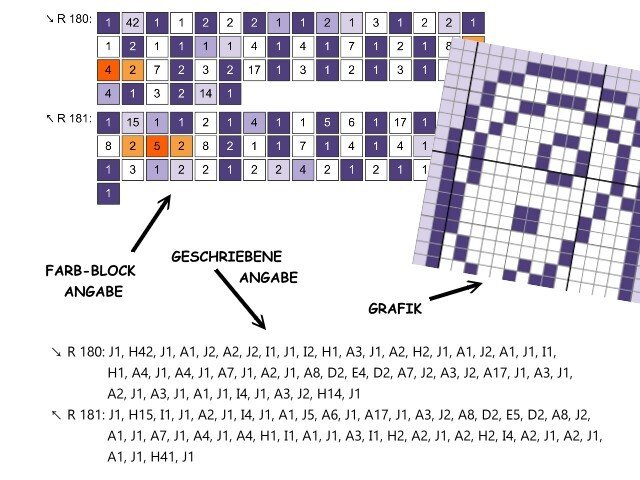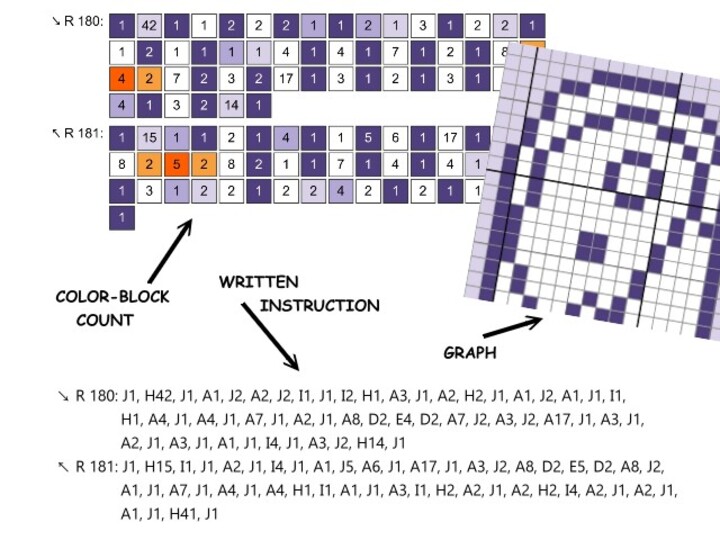 -written instructions row by row (for C2C technique)