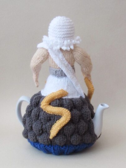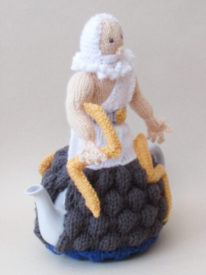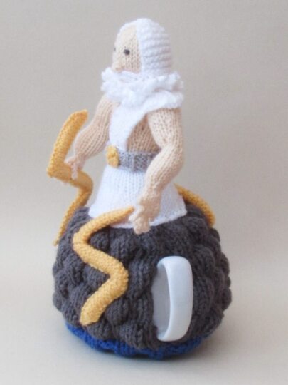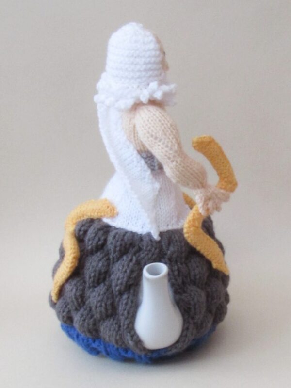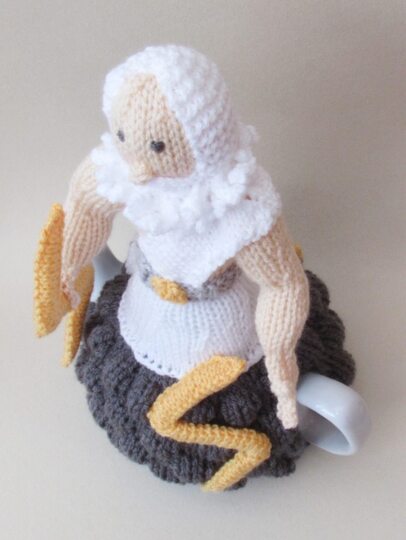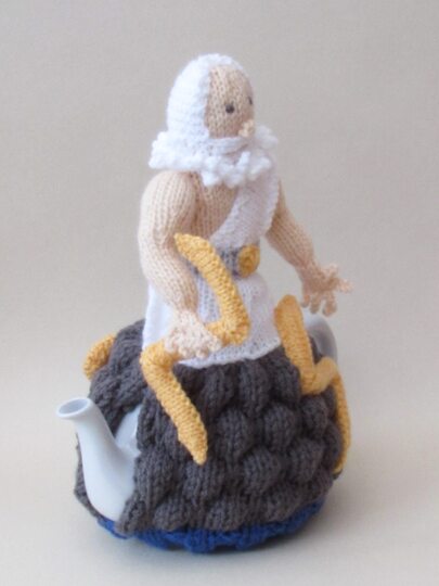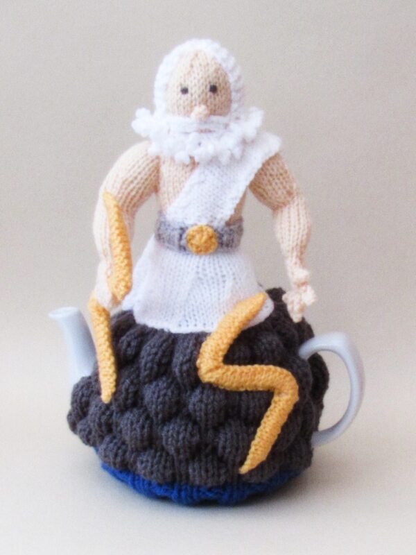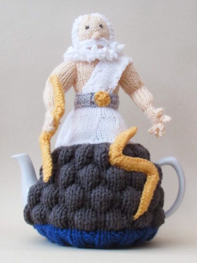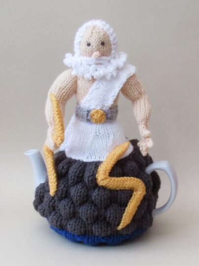 This product is the knitting pattern only; to knit your own Zeus tea cosy.