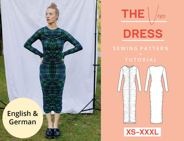 jersey dress sewing pattern in German and English (in sizes XS-XXXL as a PDF download in DIN A4 and US Letter)