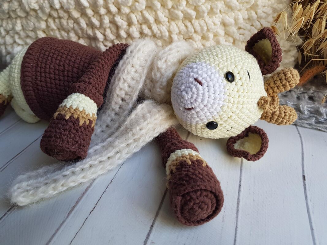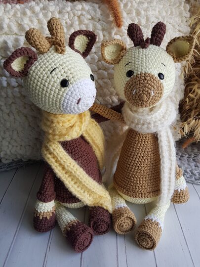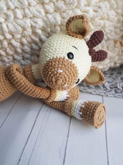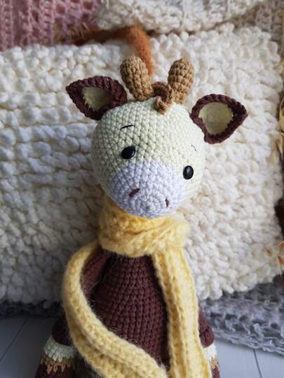The pattern shows how to crochet Joe, a happy giraffe who is always ready for winter times!