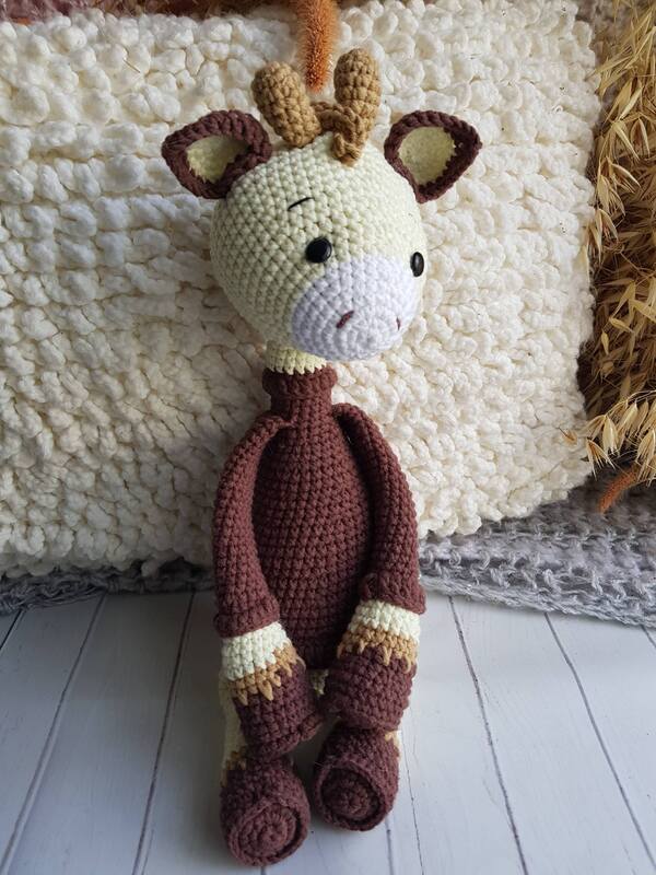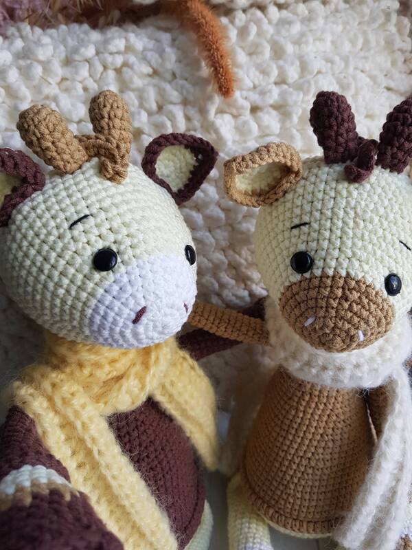 The giraffe is 40 cm tall, crocheted with medium cotton yarn and hook size 2mm.