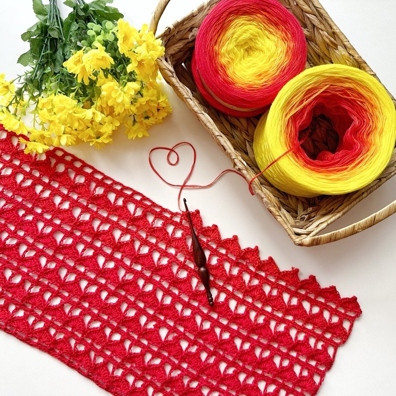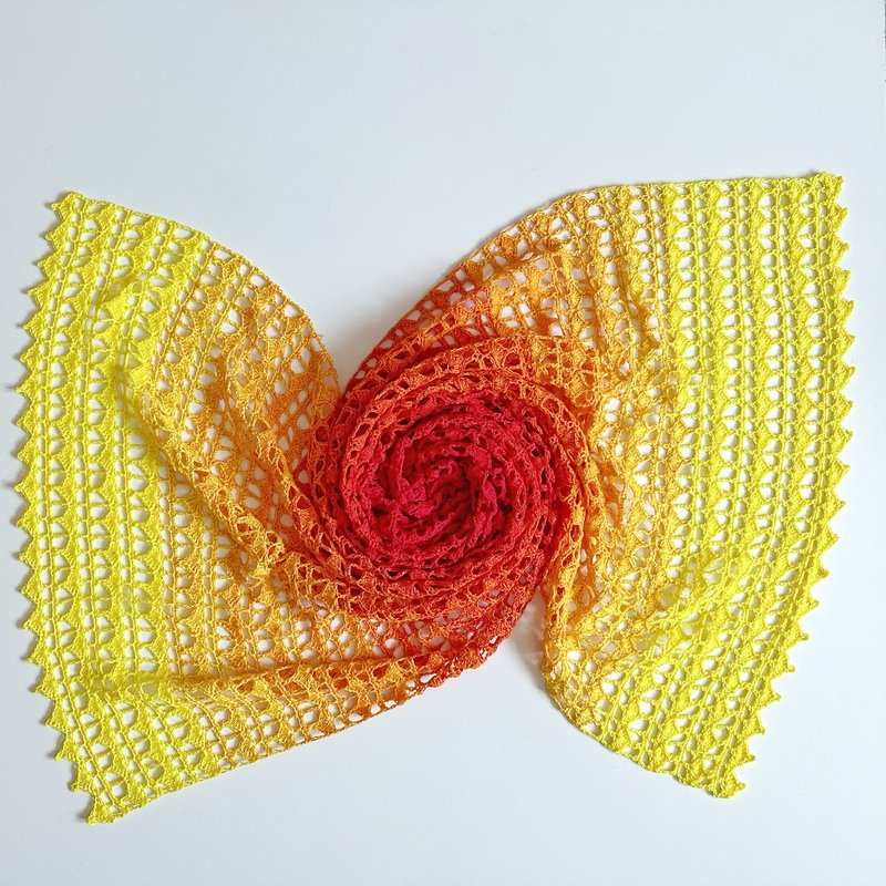 The name Velca means flame and it’s perfect for this shawl as the stitches look like little flames.
