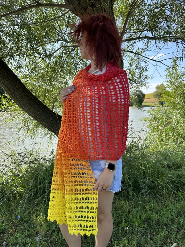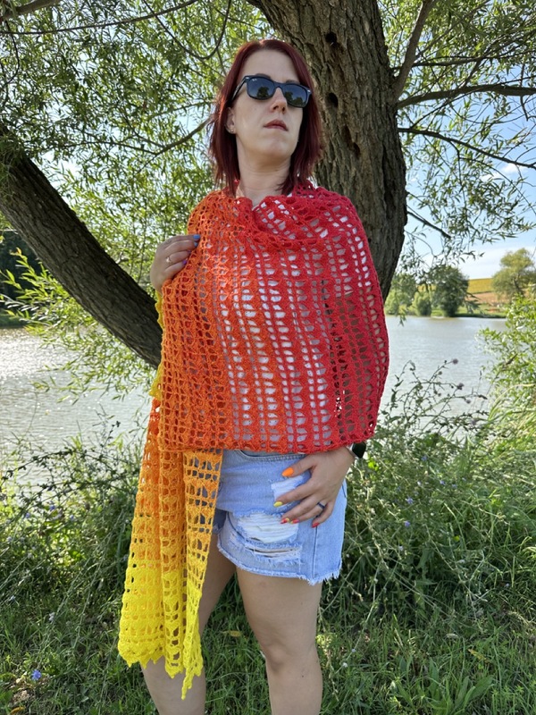 The shawl is airy and delicate looking, great for cool summer evenings.
