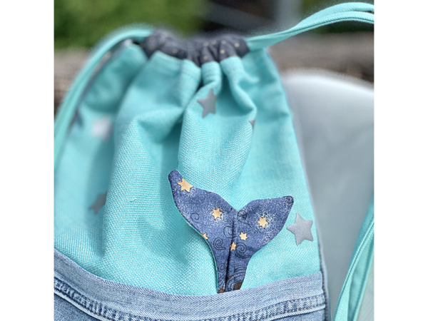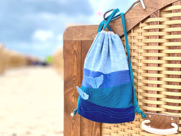 For big whale fans an absolute eye-catcher. Whether whale watcher or little mermaid, take the vacation feeling with you to the first day of school. The safety aspect for the way to school is an important point of the sewing tutorial. I show you how easy reflex materials can be integrated.