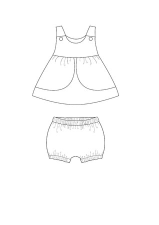 With the TWIN SET ROSA & STELLA sewing pattern you can make an adorable outfit for babies and toddlers: a playful pinafore-style dress and comfy bloomer shorts. The set is beginner-friendly and can be sewn in light summer fabrics or warmer winter fabrics.