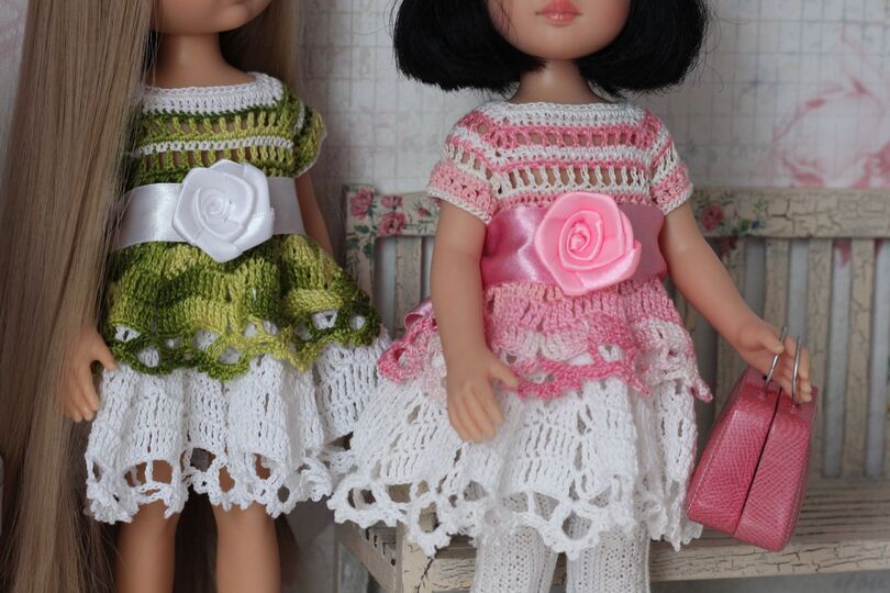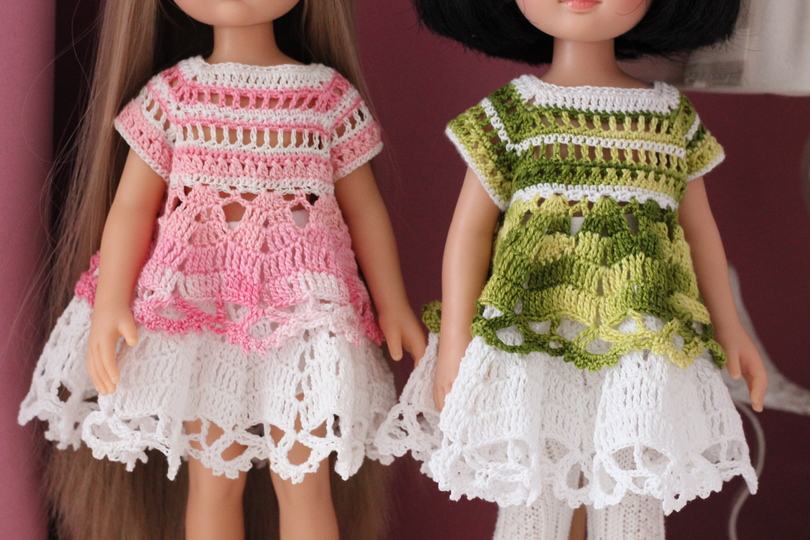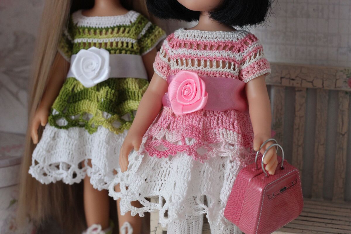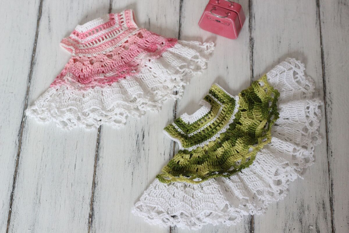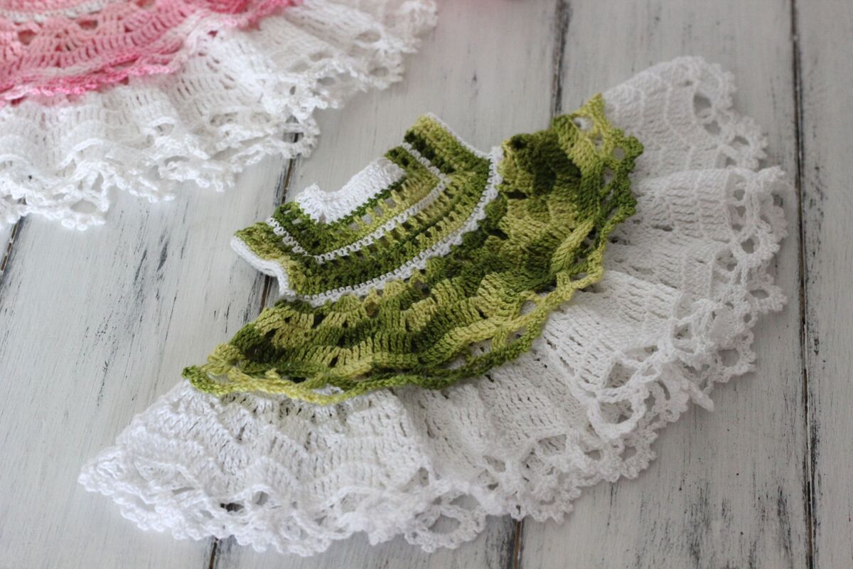 An adorable crochet dress for your 12-inch doll. This dress makes a great gift for any little girl who loves dressing her doll up! It also gives you a lovely summer clothes to add to your dolls wardrobe.