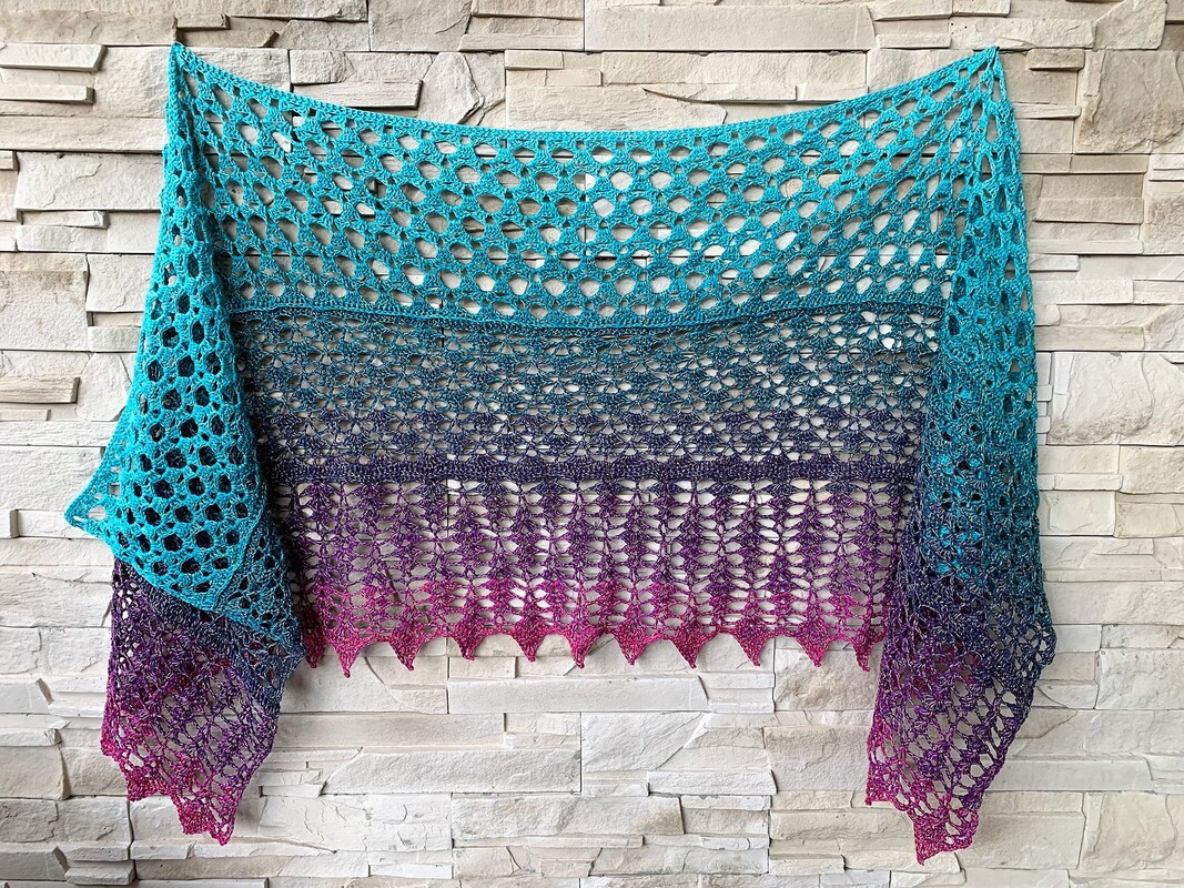 The stole "Lyke" is a beautiful, loose and airy stole, that can be crocheted in any width and length. The three patterns can be combined in any way.