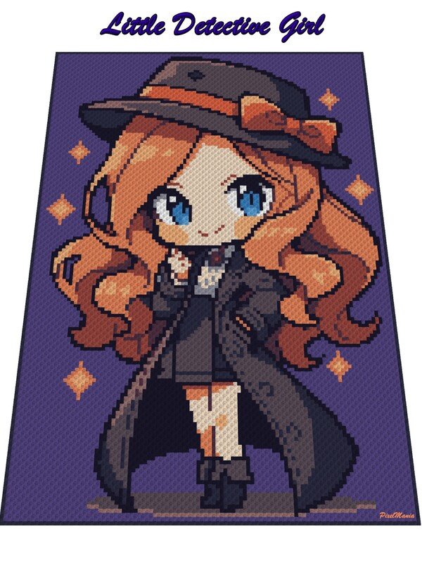 Little Detective Girl is a digital chart that can be used for different crochet techniques. Here: corner to corner = C2C or Mini C2C.