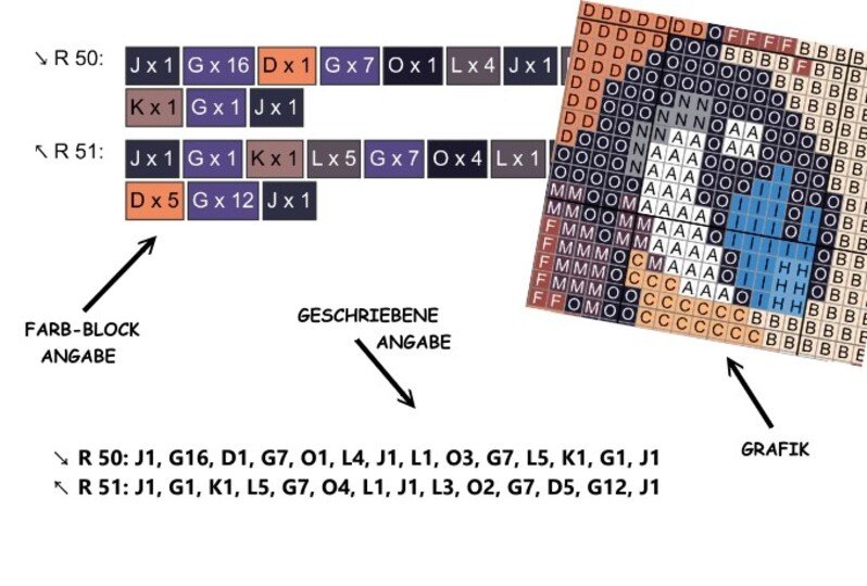 -written instructions row by row (for C2C technique)
