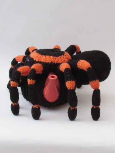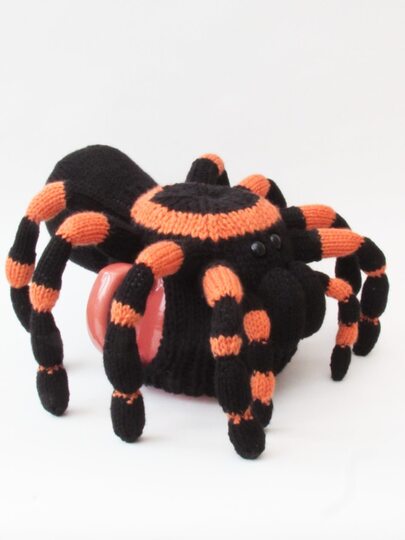 Not ideal for the faint hearted or arachnophobes, but Mexican Redknee Tarantula Tea Cosy Knitting Pattern knits up to a massive spider tea cosy that will probably scare allthe spiders in the house.