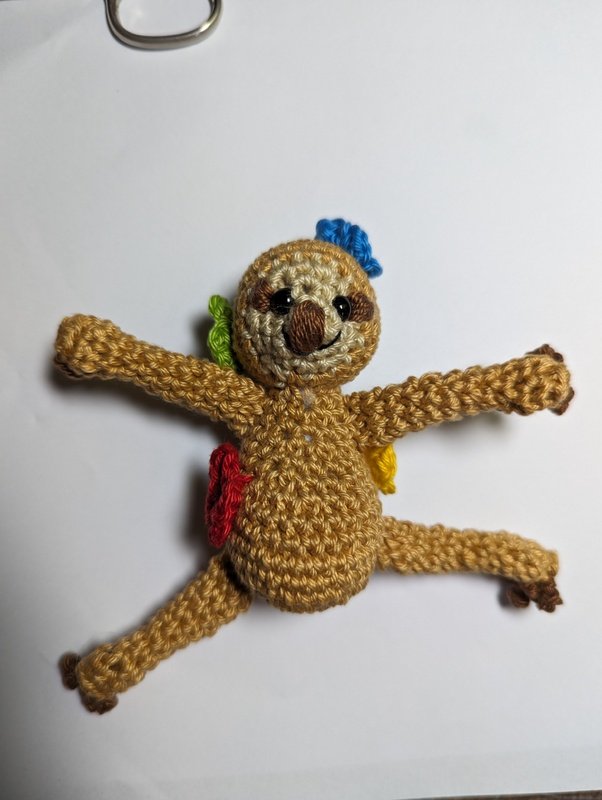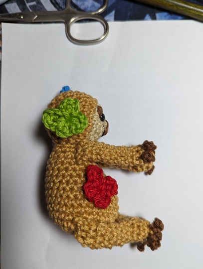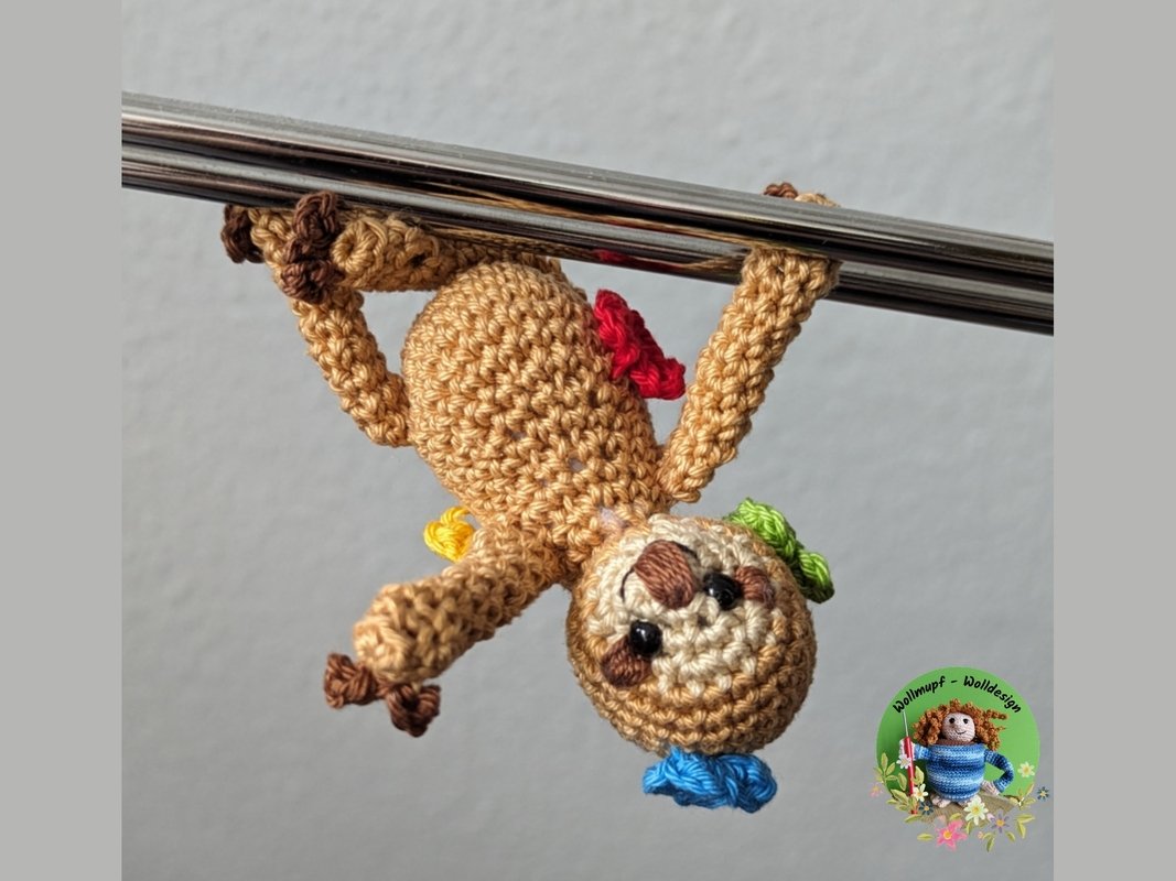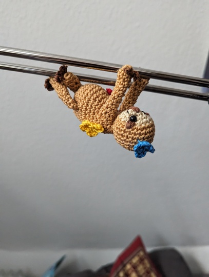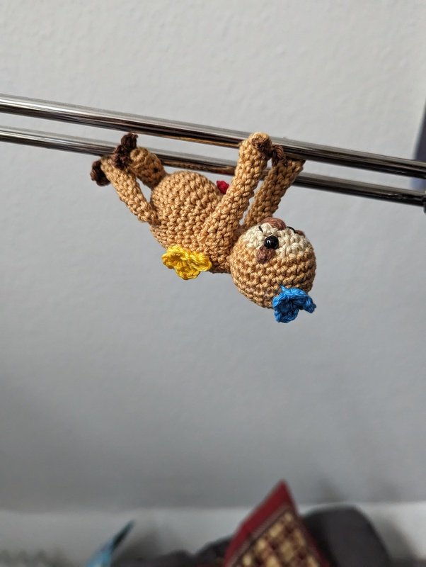 With needle hook 2.5 the sloth will be around 8,5 cm tall, 5,5 cm long and 3 cm wide.