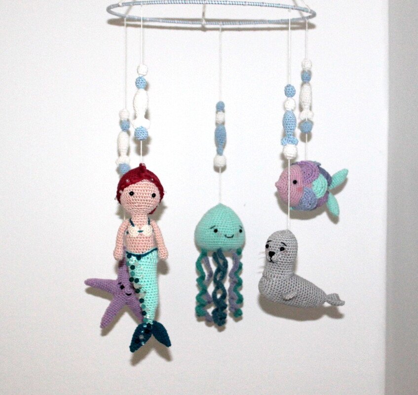 With this tutorial you can crochet yourself a mermaid mobile that will keep your baby or the baby it will be gifted to, busy for hours. It is beautifully colorful, there are a lot of things to discover, and it also promotes the development of the baby.