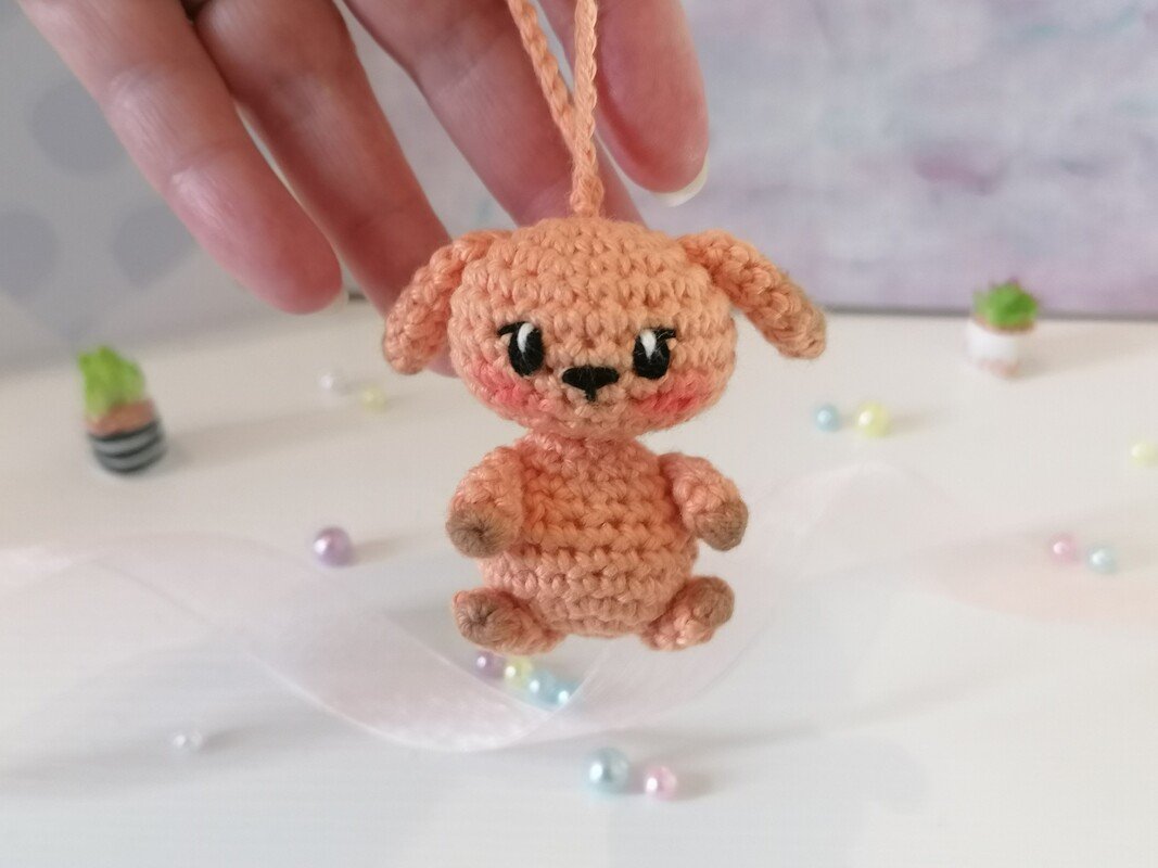 This pattern does not teach the basics of crochet. This crochet pattern consists only of written instructions and how-to photos that explain how to crochet an amigurumi puppy keychain.