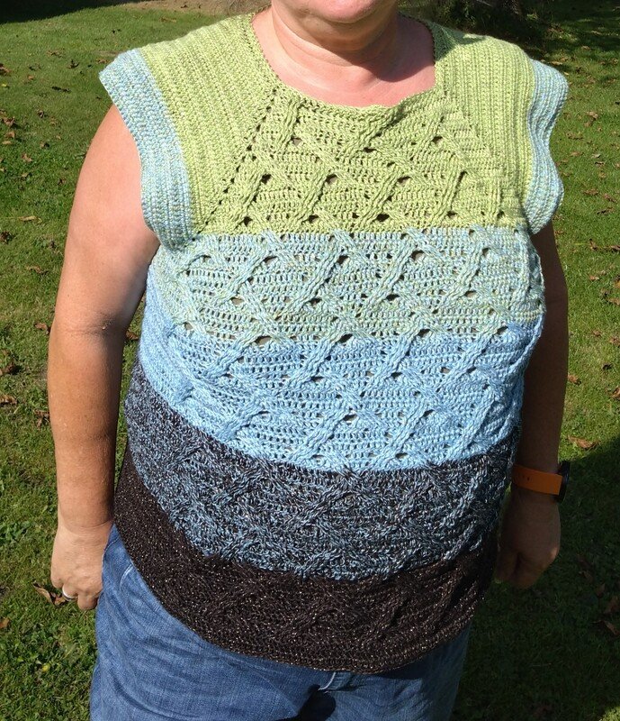Ich habe meinen Pullover für die Konfektionsgröße 42/44 gehäkelt.