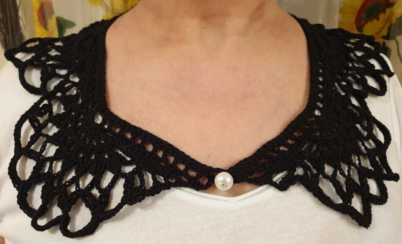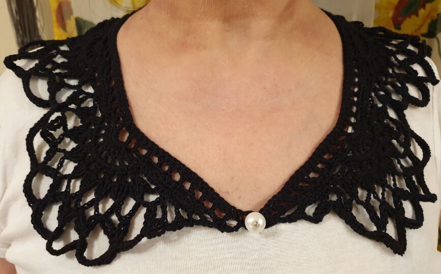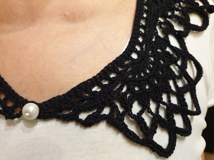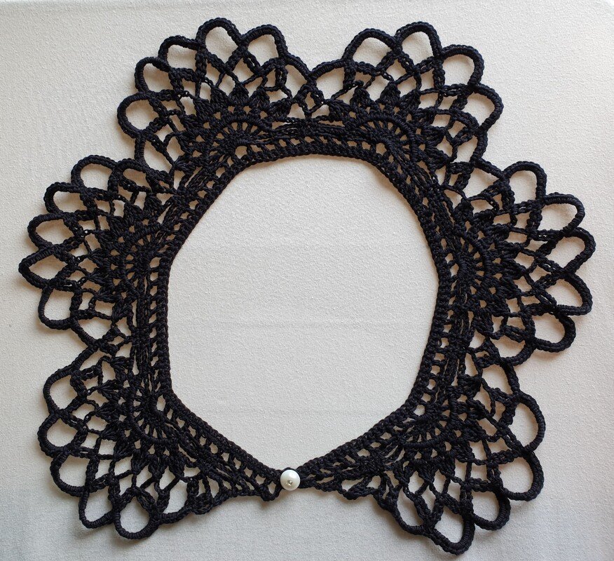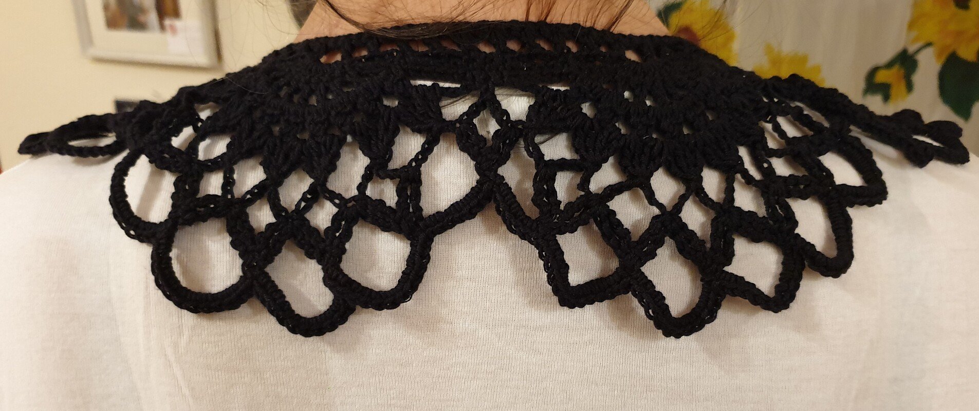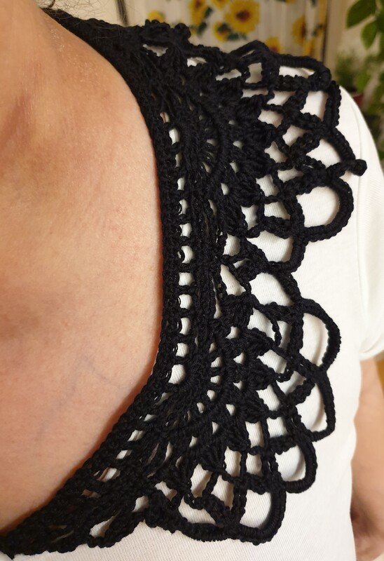 I wanted to crochet this collar with a cotton yarn and a stylish WEDNESDAY design.