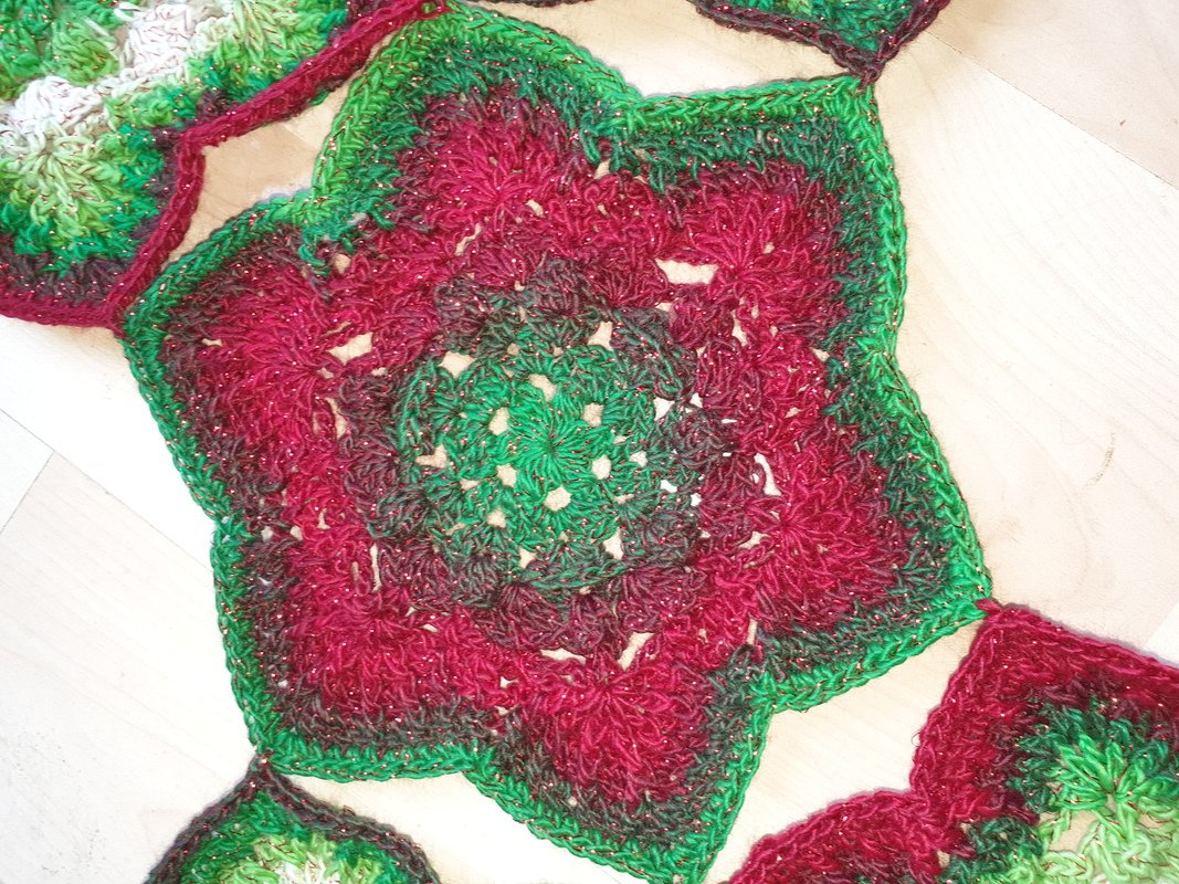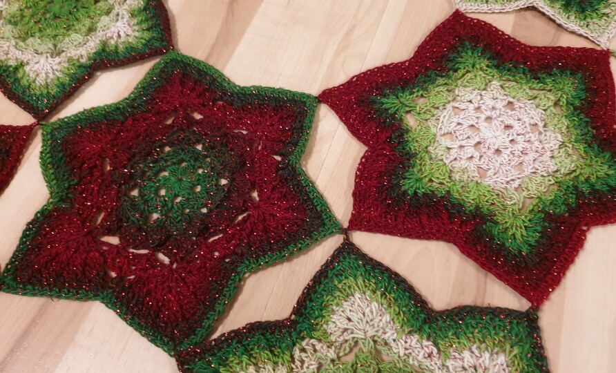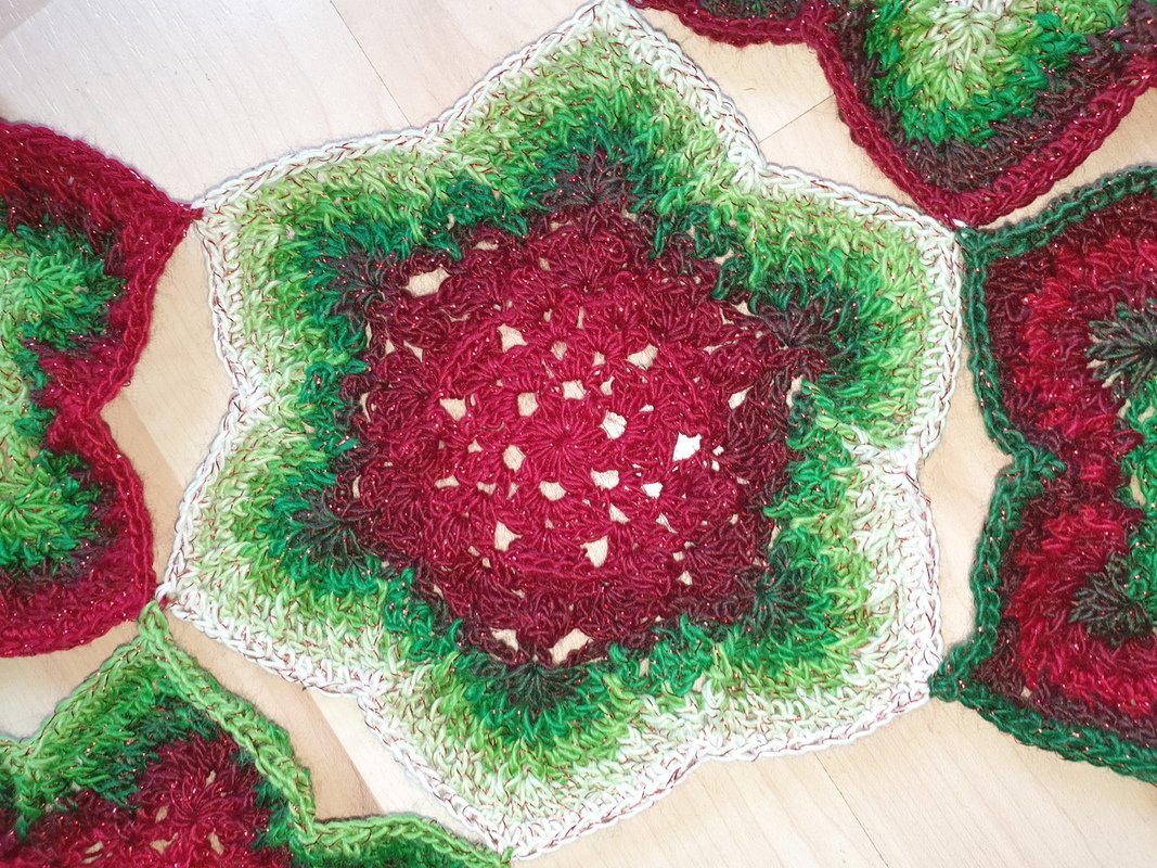 This is a pattern which came into my mind when I saw the HOBBII Christmas Universe limited edition yarns in 2022. I immediately knew that I wanted to make a Christmas Tree Skirt with it. Therefore I ordered 2 skeins…. and here is the result design …