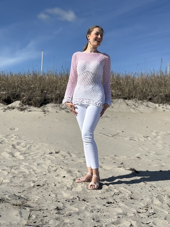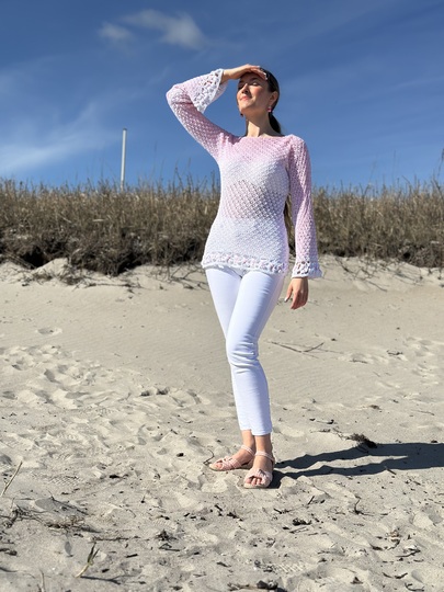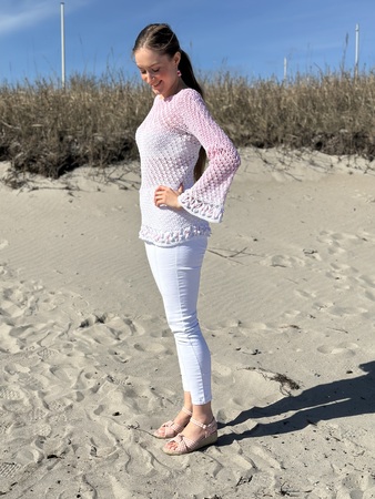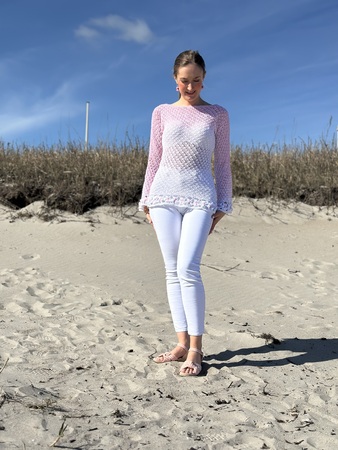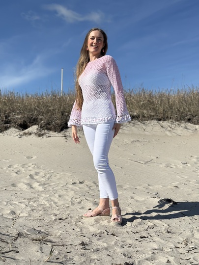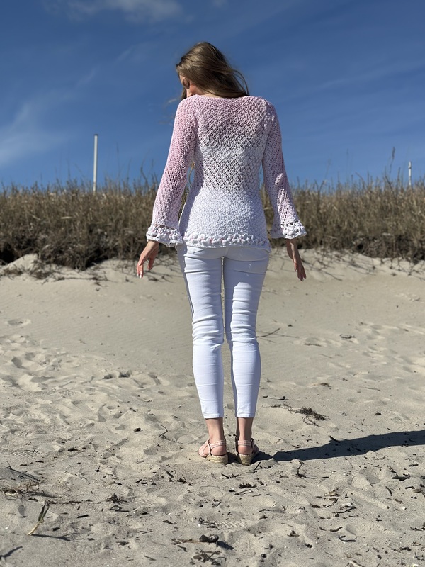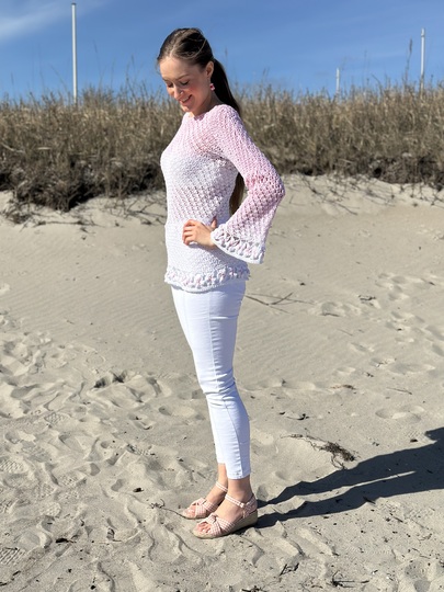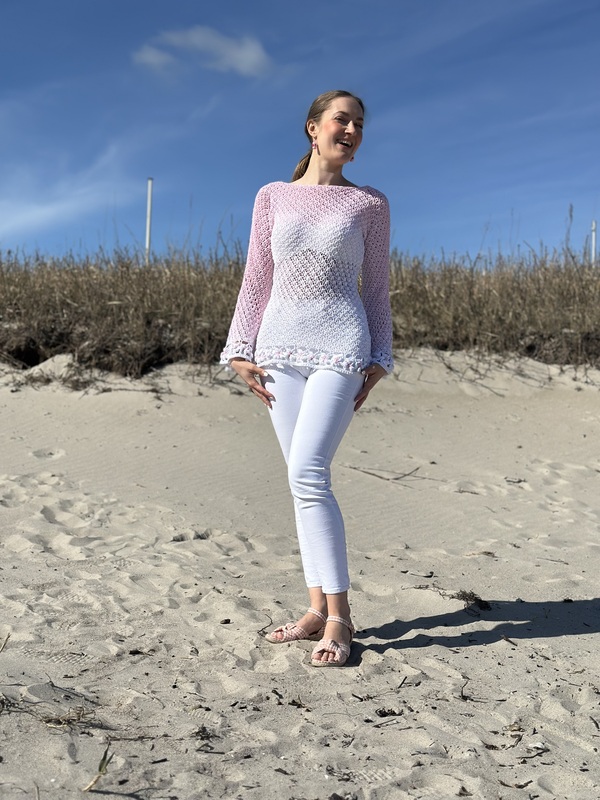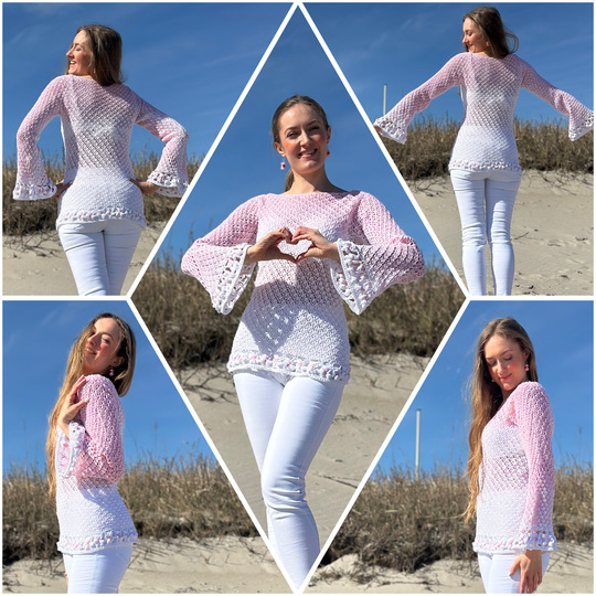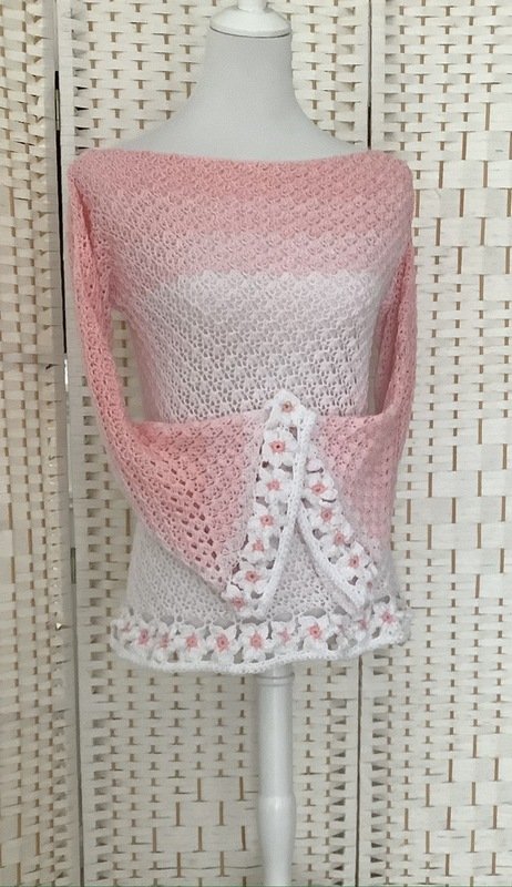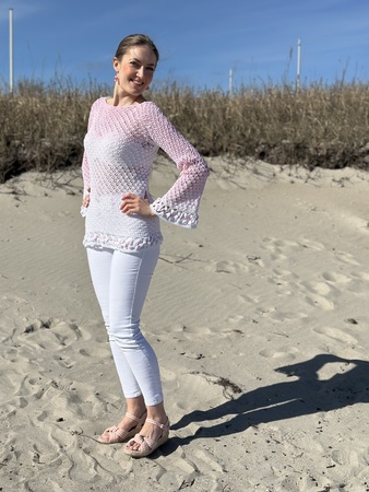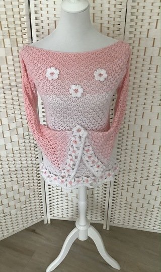 Der schöne Pullover ist an jede Größe anpassbar und für nahezu jedes Garn geeignet. Durch die Blumen und das ganz besondere Muster verwandelt er sich bei jeder Figur zum echten Hingucker. Die Blumenborte ist optional und kann natürlich auch je nach Geschmack weggelassen werden.