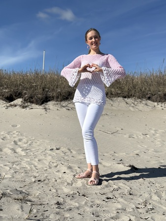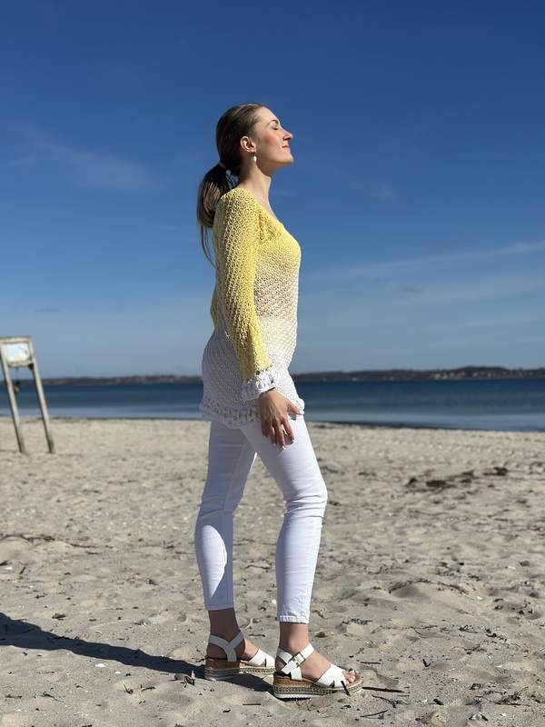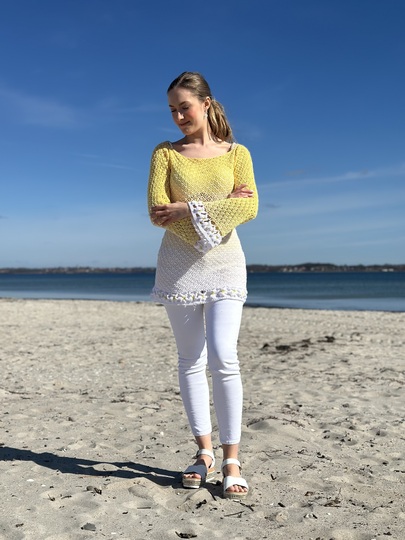 Der 1-Bobbel-Häkelpulli kann an jede Größe angepasst werden.