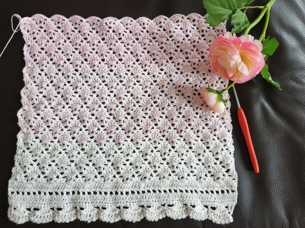 It is a very easy pattern and quickly done. The HOBBII cotton whirl is perfectly suitable for this shawl and it has a very beautiful texture, soft yarn and also anti-allergic.