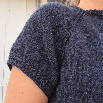 The Rosy Tee has a straight cut but can be knit to fit closer to the body if desired. The length can easily be adjusted as well. The pattern includes two options for the sleeve shape.