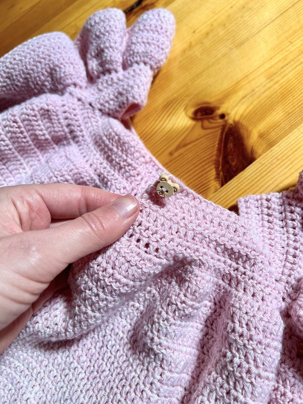A beautiful ruffled dress worked from top to bottom in the raglan technique.