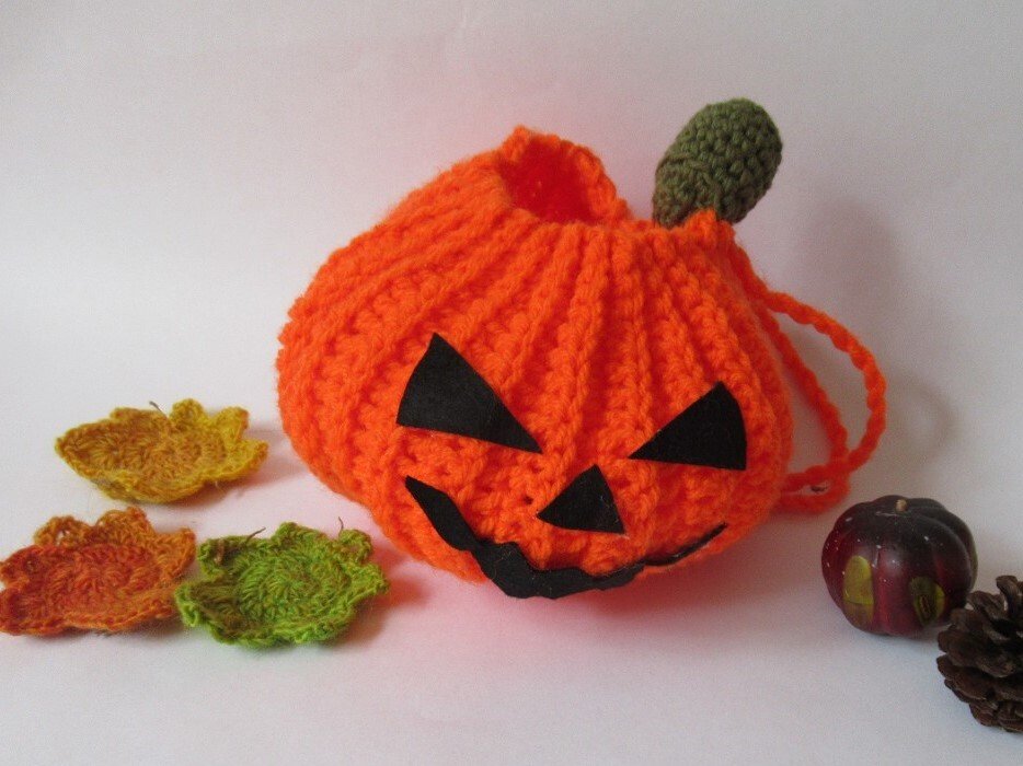 Kürbisse sind eine unentbehrliche Dekoration im Herbst und zu Halloween. Dieser gehäkelte Kürbis ist als Geschenkesäckchen für die an Halloween eingesammelten Süßigkeiten gedacht. Er kann in verschiedenen Größen gearbeitet werden, so dass er, mit Steinen oder einem Säckchen mit Sand gefüllt, auch als Tür- oder Fensterstopper verwendet werden kann. Von innen mit einer LED-Lichterkette beleuchtet, ist er eine schaurig-schöne Halloween-Dekoration.