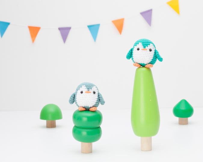 If you use the yarn and hook indicated, the big penguin will be about 10.5 cm (4.1 inches) tall and the small penguin will be about 5 cm (1,9 inches) tall. You can make it bigger or smaller using another type of yarn but, please, adapt the crochet hook and eyes accordingly.