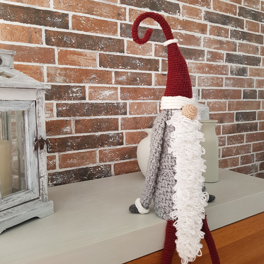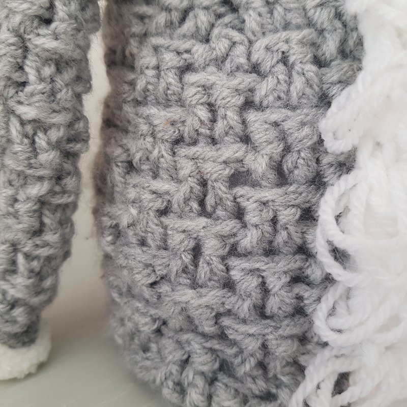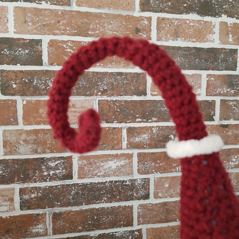 Das sitzende Wichtel wurde mit Nadelstärke 4 mm gehäkelt.