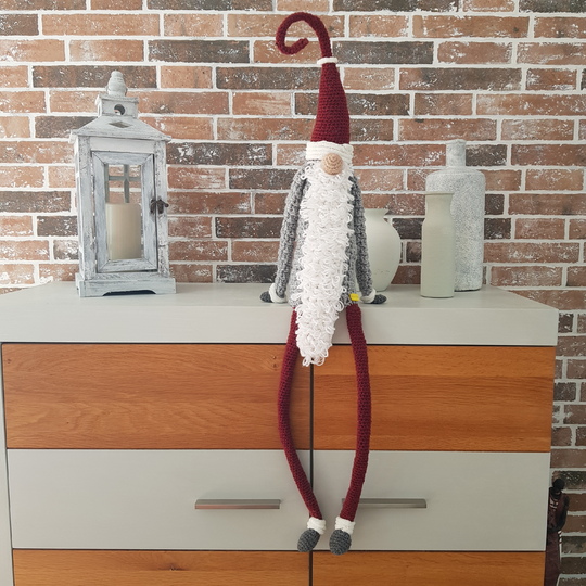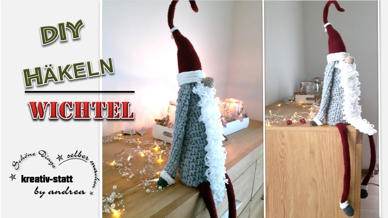 Der Wichtel ist sitzend – also ohne Beine – ca. 50 cm hoch. Am Ende bestimmst du das mit der Wollstärke.