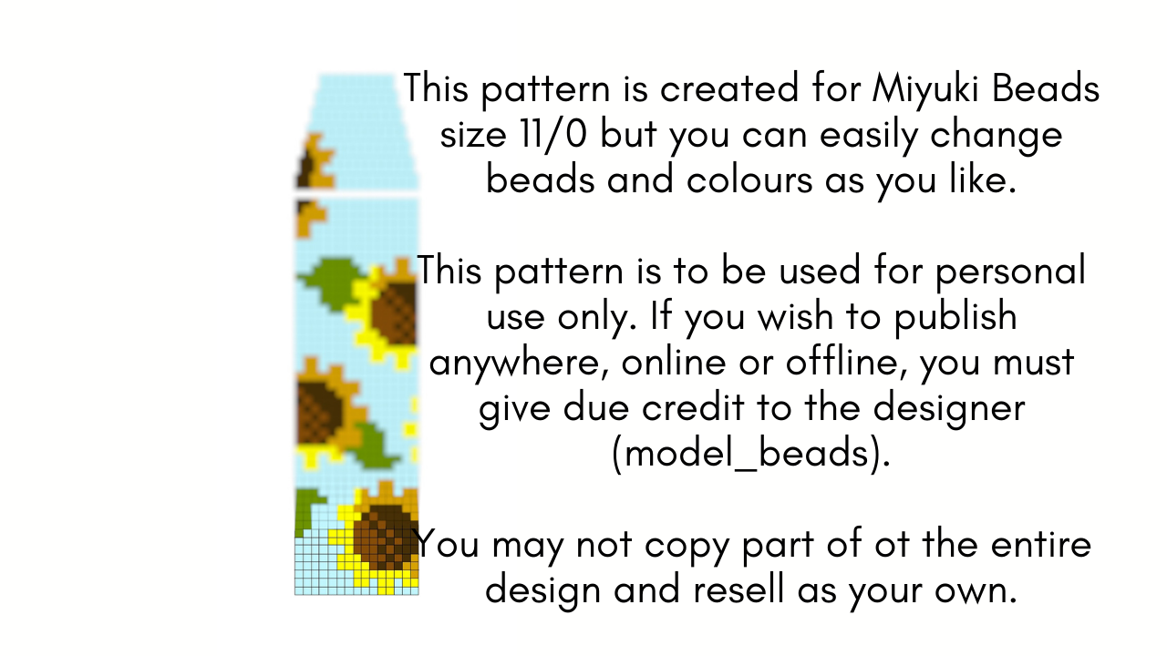 This pattern is created for Miyuki Delica seed beads size 11, but you can chop and change colors and beads as you please)