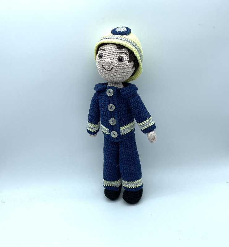 Das ist etwas für echte Feuerwehrfans. Feuerwehrmann Florian ist liebevoll gestaltet. Hose, Jacke und Helm sind abnehmbar und selbstverständlich ist er auch untendrunter angezogen. Du willst deinen eigenen Florian häkeln? Dann fang am besten gleich an.
