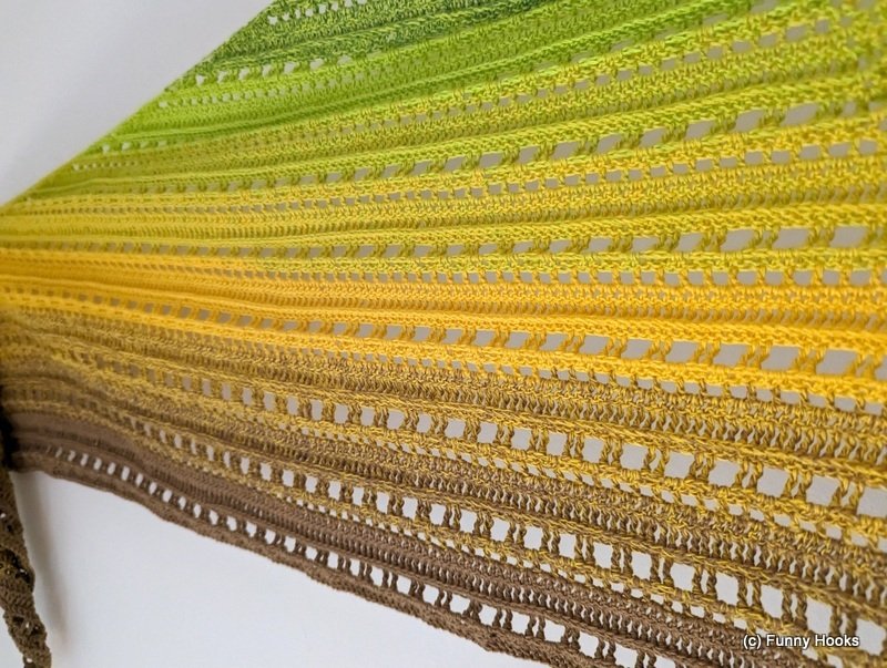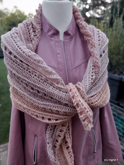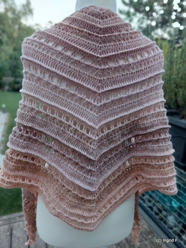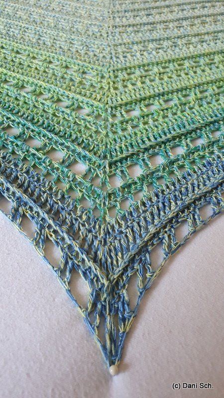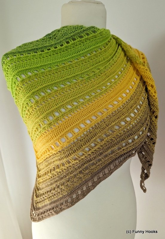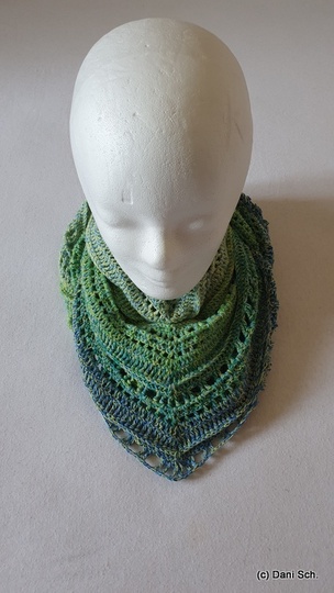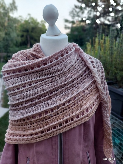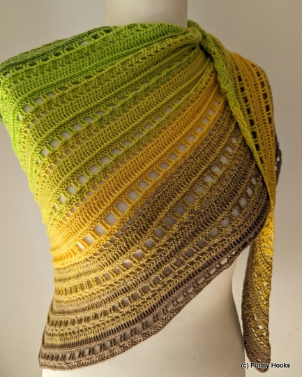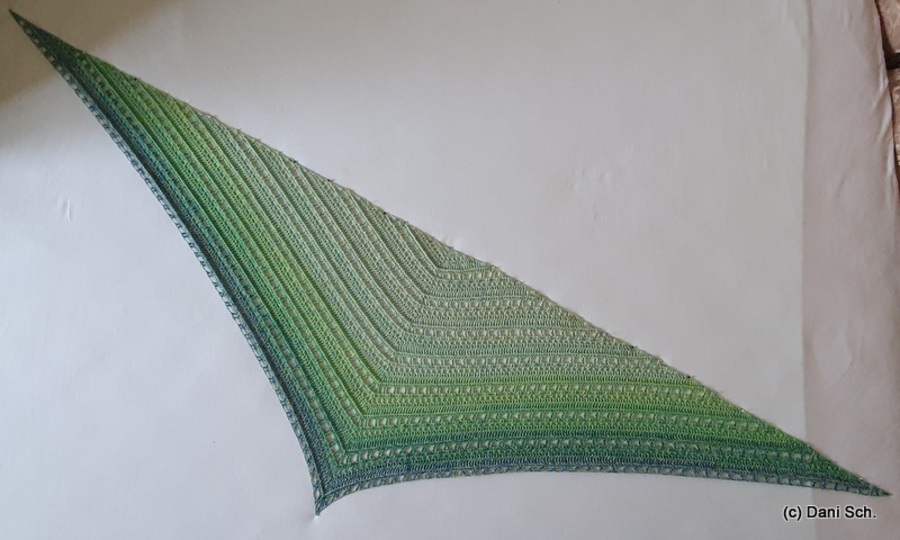 The shawl is ideal for gradient yarn but of course also suitable for any other type of yarn.