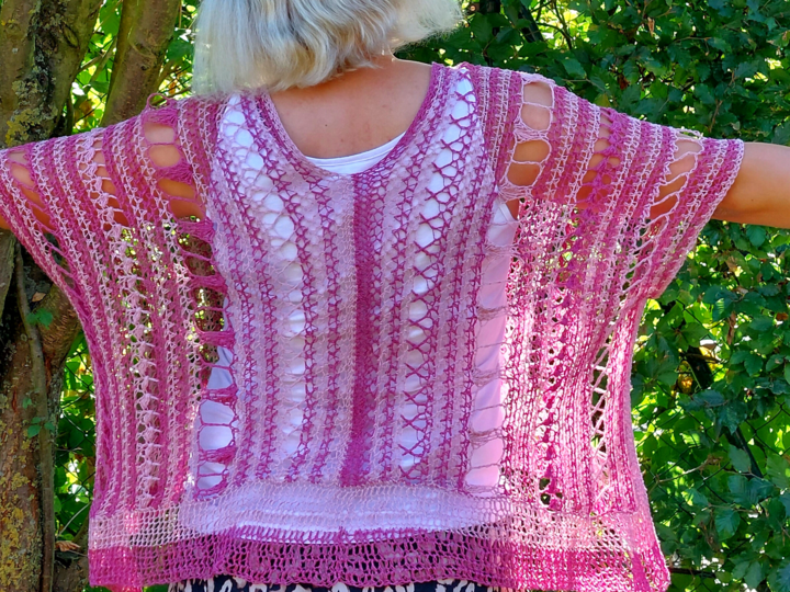 This shirt you can adapt individually - in size and length but also in the sequence and use of the different patterns. So every shirt is unique. And you don't have to look for the same yarn or make a gauge swatch. Everything is measured and adapted individually.