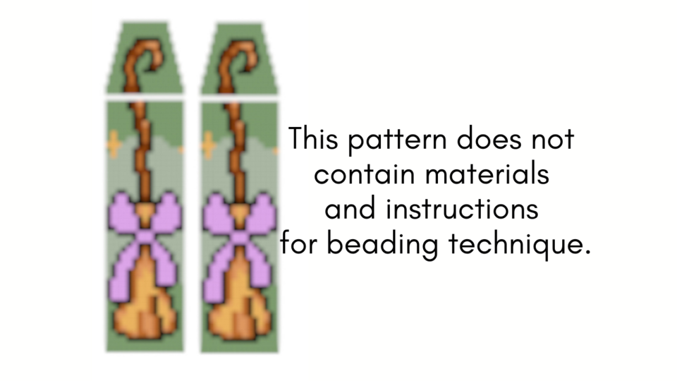 This pattern captures the essence of a classic witch's broom with intricate beadwork. The tiny, shimmering beads create the illusion of bristles and a detailed handle, giving these earrings a whimsical and unmistakably witchy vibe.